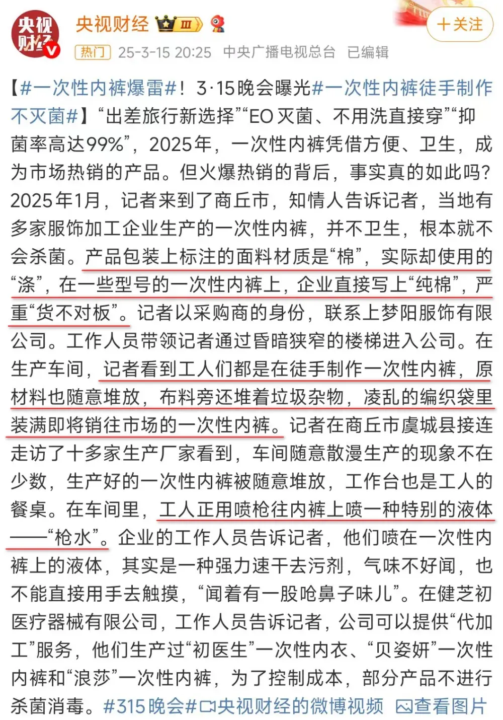 比如说,此前闹得沸沸扬扬的一次性内裤和一次性手套翻车事件,在某些小商家小作坊,直接就让工人们徒手封装,根本没有达到灭菌的效果。