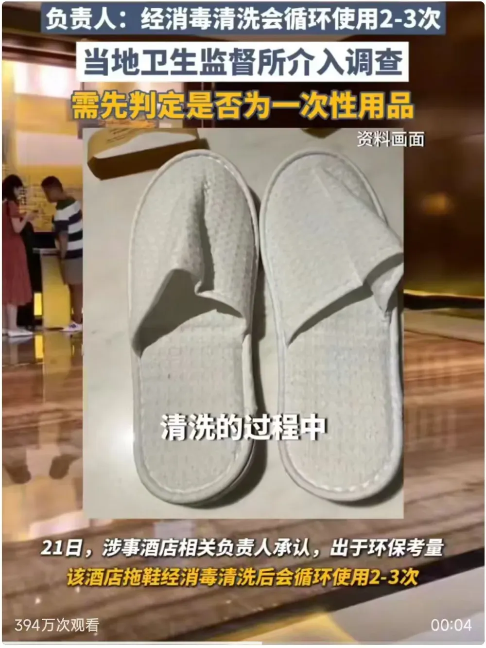毕竟,一般来讲,酒店提供的这种白色拖鞋,大家普遍认为属于“一次性拖鞋”。