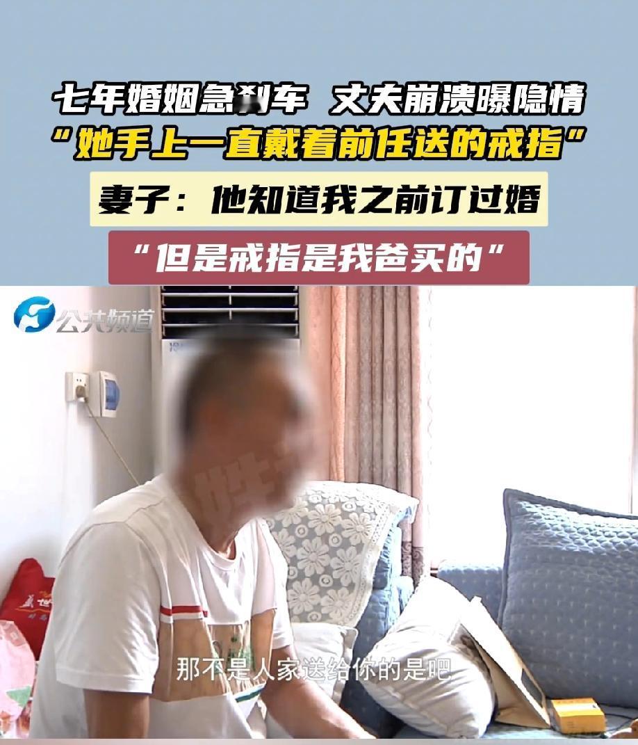河南许昌,一男子和妻子结婚七年,原本婚姻幸福,生活美满,不料,一次争吵,男子彻底崩溃,甚至直接提出了离婚。万万没想到的是,男子想离婚的原因居然是女子手上一直戴着和前任退婚时父亲送的一枚戒指。 七年前,安先生经人介绍认识了妻子彭女士,俩人相处下来觉得脾气性格都合得来,没过多久就谈婚论嫁了。 订婚之前,彭女士主动跟安先生坦白,家里介绍过一个对象,还订过婚,不过后来因为合不来就退婚了。 安先生当时觉得,谁还没个过去呢,彭女士愿意主动说出来,说明是真心想跟自己过日子,也就没往心里去,俩人顺顺利利地办了婚礼,开始了七年的婚姻生活。 可结婚之后,安先生心里一直有一个疙瘩。那就是彭女士的手上一直戴着一枚金戒指,从结婚那天起就没摘过。 一开始,安先生没好意思问,总觉得可能是妻子自己喜欢的首饰。可时间一长,他越看越别扭,尤其是看到身边朋友的妻子都戴着结婚时男方给买的戒指,再对比彭女士手上的这枚,心里的疑问就越来越深。 他偷偷观察过,这枚戒指样式挺精致,不像是随便买的,越想越觉得这会不会就是彭女士和前任订婚时,前任送的那枚。 这个念头一旦冒出来,就像生了根一样,让安先生坐立不安。他开始忍不住胡思乱想,妻子是不是还没忘了前任?这么多年戴着这枚戒指,是不是心里还惦记着过去? 可他又不好直接问,怕伤了夫妻感情,也怕自己想多了显得小心眼。就这么着,这个心结在他心里压了七年,平时虽然俩人日子过得平平静静,可安先生心里的委屈和不满一直在累积。 直到前不久,俩人因为一点家庭琐事吵了起来,情绪一激动,安先生终于忍不住把心里的话说了出来。 他崩溃地对着彭女士喊:“你心里是不是还想着前任?不然为什么七年了,一直戴着他送你的订婚戒指?” 这话直接让彭女士懵了,她没想到丈夫对自己有这么大的误会,当场就反驳:“我之前跟你说过我订过婚,可这戒指根本不是前任送的,是我爸给我买的!” 彭女士说,当初退婚的时候,所有前任送的东西都还回去了,这枚戒指是退婚之后,她爸心疼她,特意带她去首饰店挑的,算是给她的安慰,也是一份念想。 她觉得这枚戒指是爸爸的心意,戴着挺有意义,而且订婚之前就跟安先生说过退婚的事,以为他不会在意这枚戒指的来历,没想到丈夫竟然误会了这么多年。 说真的,安先生多少有点小题大做了,七年的夫妻感情,连这点信任都没有吗?妻子早就坦白订过婚,有疑问不会直接问,非要自己憋七年,最后闹到离婚,太不值得了。 婚姻里最重要的是沟通,有误会不及时解开,只会越积越深,最后把感情耗没了。 当然,安先生的感受也能理解,不管是谁,看到伴侣一直戴着和前任相关的东西,心里都会不舒服。戒指本身不重要,重要的是它背后的意义,妻子明知道丈夫可能介意,却一直不解释,也不考虑丈夫的感受,确实有点不妥。 然而,说到底,安先生不该把疑问憋在心里七年,有想法就该坦诚说出来,而彭女士也忽略了丈夫的情绪,既然知道戒指的来历特殊,就该提前说清楚,避免不必要的误会。婚姻里的信任,是靠一次次坦诚沟通建立起来的,而不是靠猜测和隐忍。 七年的婚姻因为一枚戒指走到尽头,实在让人惋惜。其实很多夫妻矛盾,都是源于不起眼的误会和不愿开口的沟通。 希望不管是情侣还是夫妻,遇到问题都能及时坦诚地交流,多站在对方的角度想想,别让本该珍惜的感情,毁在沉默和猜忌里。 对于此事,你怎么看呢?素材来源于:百姓调解,2025年11月17日报道。