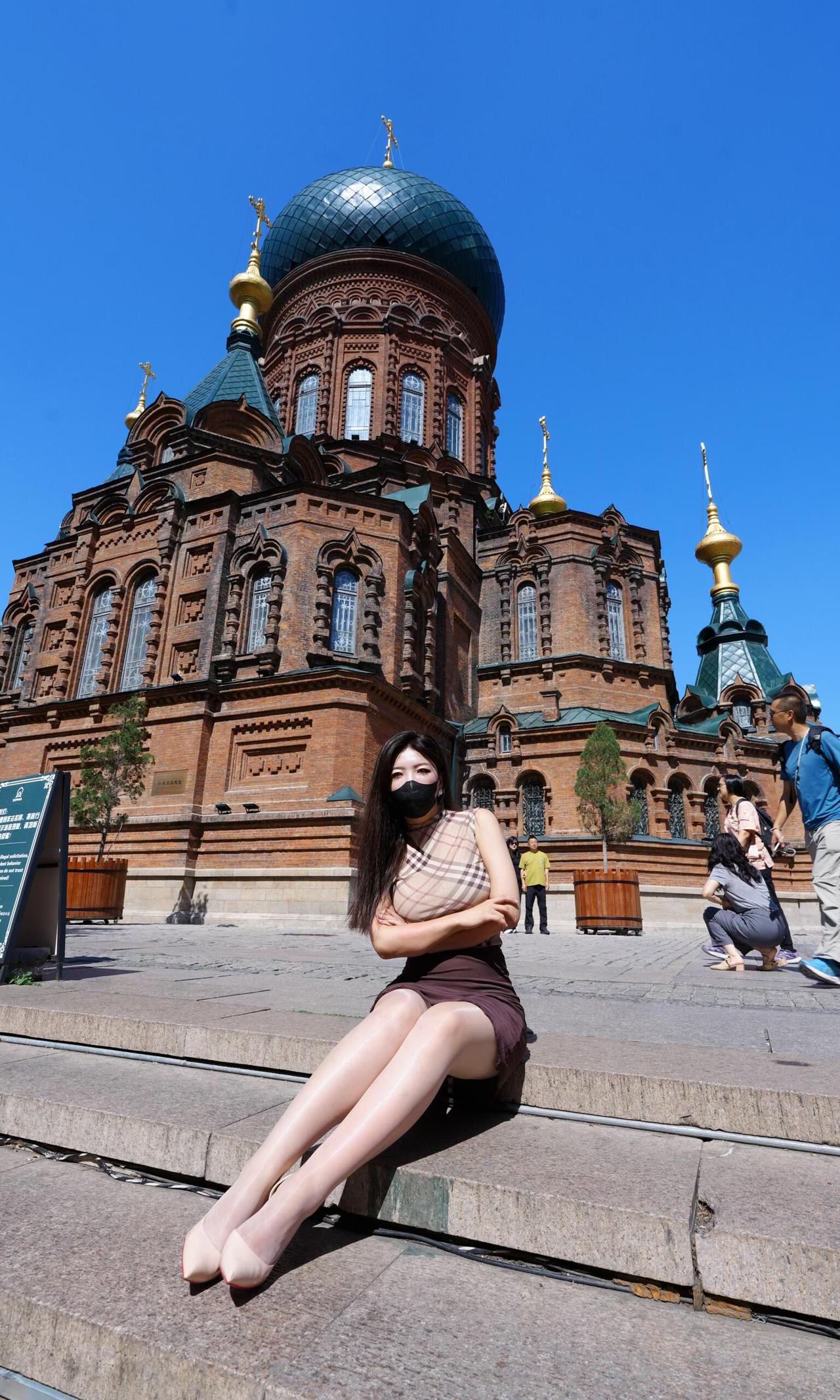 红砖砌成的穹顶下,风把格纹裙摆揉成夏的模样。 日光吻过教堂尖顶的金,也吻过丝袜上细碎的光斑:像把整座索菲亚的晴朗,都织进了这一身松弛的温柔里。 长椅是城市的留白,高跟鞋尖踮着风的节奏,连影子都懒懒散散,浸在穹顶投下的、裹着旧时光的阴影里。 此刻不必追赶时间,只消让裙摆与钟声,一起晃成夏天的诗行。 = = = = = = = = = = = = = = = = = = = = = = 【拍照思路|把建筑拍成氛围感背景板】 ①机位选择:避开人群,站在教堂侧方台阶/路灯旁,让穹顶+金顶入镜,建筑线条衬出人物轮廓; ②光线利用:正午逆光拍发丝光,侧光怼脸拍皮肤通透感; ③动作松弛感:撑头/搭腿/抬臂,让身体自然贴靠场景(长椅/石墩都能当道具)。 【附:构图参数细节】 –焦段用50mm定焦(等效全画幅),避开广角畸变,刚好框住教堂主体+人物; –构图比例:人物占画面1/3(放右下/左下),教堂穹顶留2/3上半部分,平衡建筑厚重感; –参数参考:光圈f2.8(虚化人群)、快门1/1000s(抓拍动态)、ISO100(正午光足够)。