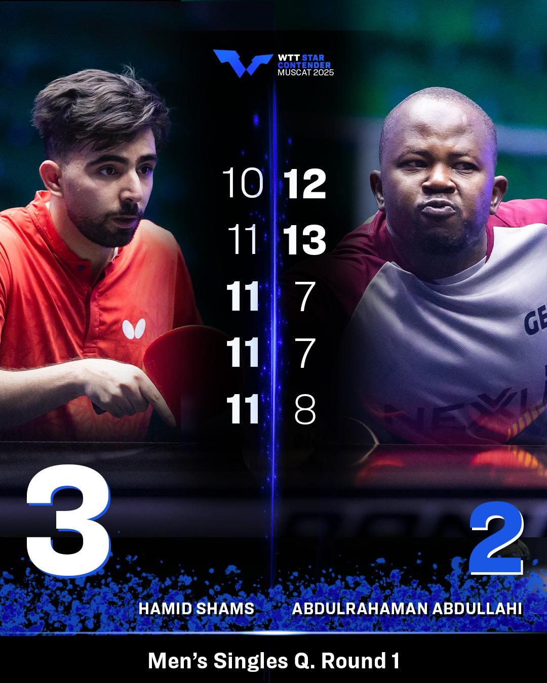 WTT:沙姆斯3-2逆转阿卜杜拉夺WTT马斯喀特站胜利