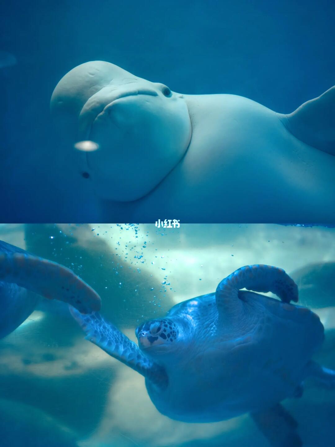 海底世界既视感!最震撼!巨大的落地玻璃,活泼的白鲸从玻璃前掠过的时候照个合影,大鱼海棠感满满~