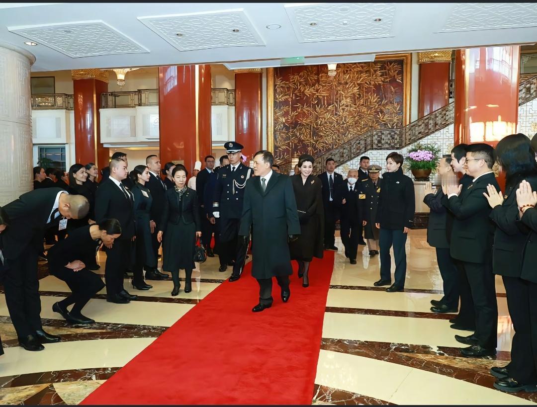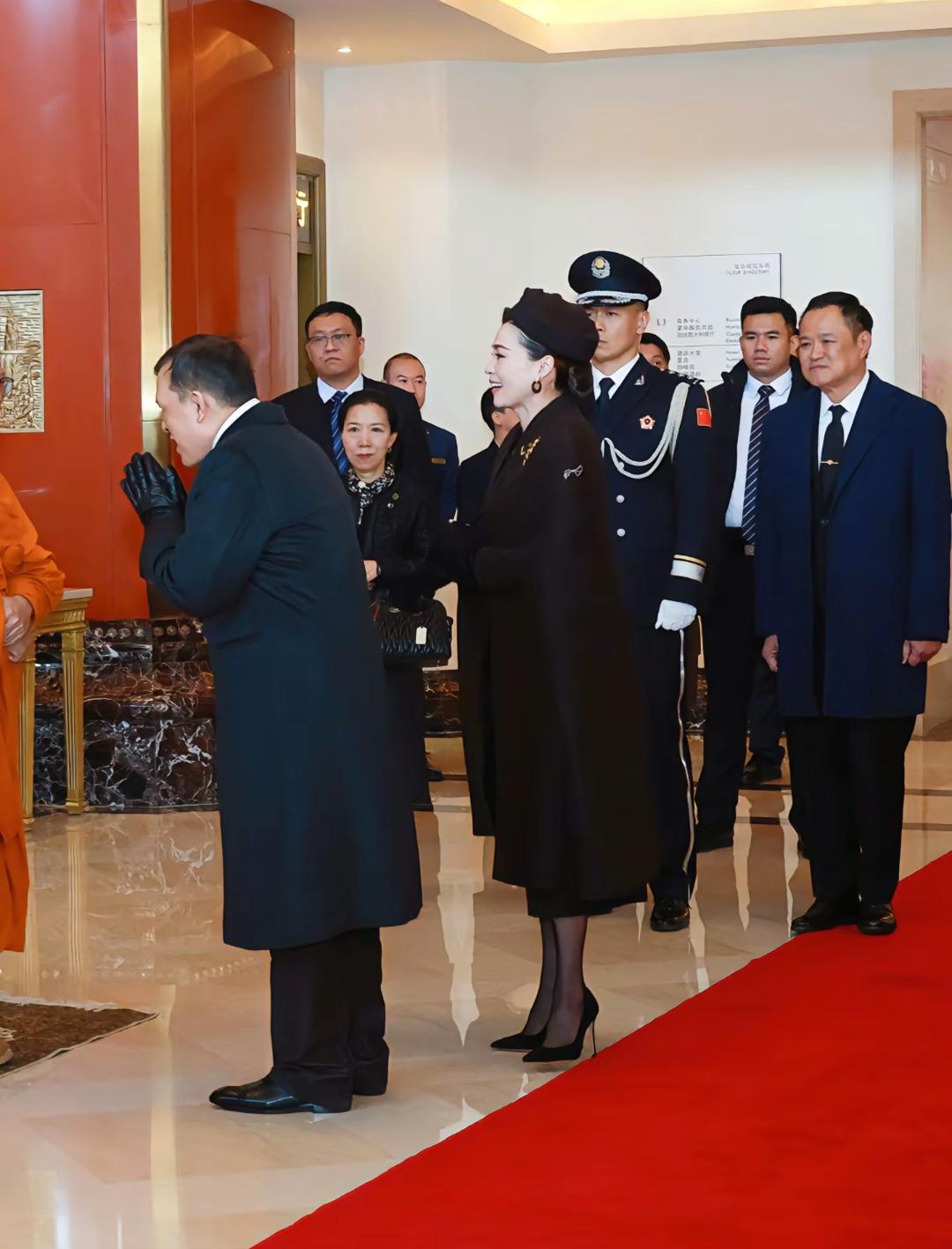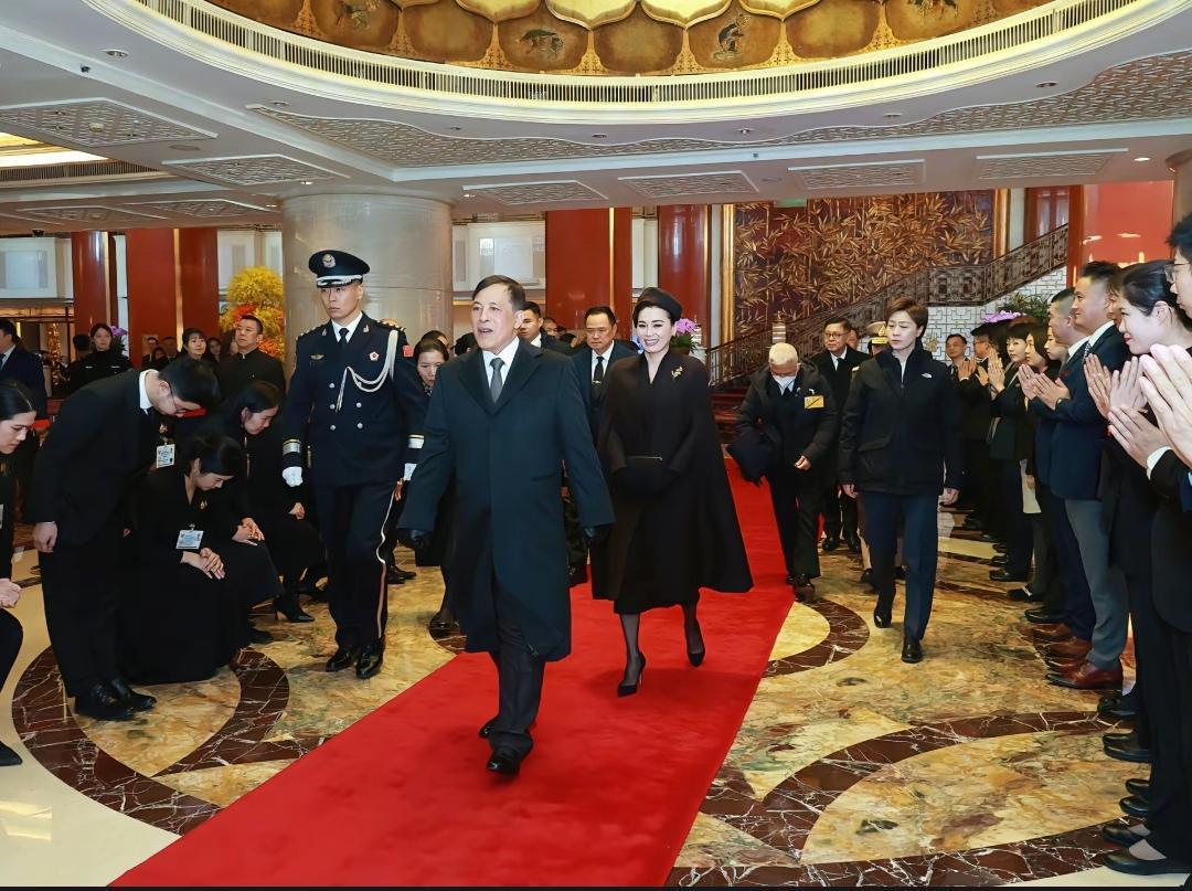11月17日,苏提达和玛哈回国前,在下榻宾馆举行了简单的告别仪式,并与送行人员进行合影留念。 在华泰国人自发来到下榻宾馆,按照传统礼仪行跪拜礼,苏提达和玛哈特别开心看到他们,地板上铺了一小块地毯,苏提达和丈夫站在上面与大家合影。 苏提达还与厨师及其工作人员进行合影,即便是走红毯正式离开前,女保镖依然紧紧伴随左右。 送别场面很温馨也很感人。