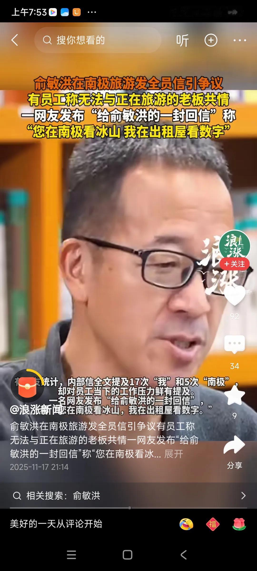 俞敏洪老师也开始学王石了,当年万科王石经常爬山,离开公司十几天,公司正常运作,被称为美谈,运筹帷幄之中,决战千里之外,,, 于是于老师也学王石,可是效果不同啊,二家企业文化不同,所以效果不同,[捂脸][捂脸] 王石虽然出去玩,下面有一个管理团队,管得井井有条,有重要的事才向王石汇报,所以王董事长出去不耽误工作,[捂脸][捂脸]