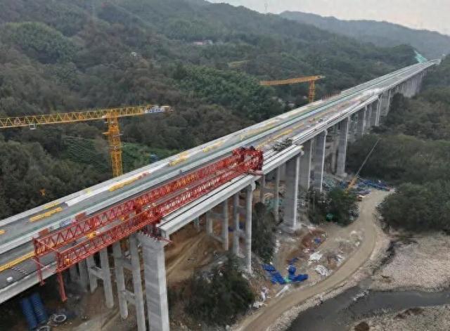 初冬的大别山层林尽染,安徽省六安市金寨县天堂寨支线高速公路建设现场却激战正酣。11月,天堂寨支线高速公路一标一分部实现双重大突破,青山枢纽十里溪拼宽桥完成全线首片梁板毫米级精准架设,首联现浇箱梁同步启动浇筑,标志着工程正式进入桥梁上部结构施工阶段,400余名建设者正昼夜抢抓冬季施工黄金期。