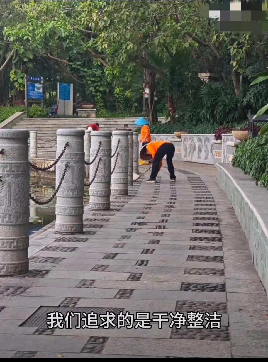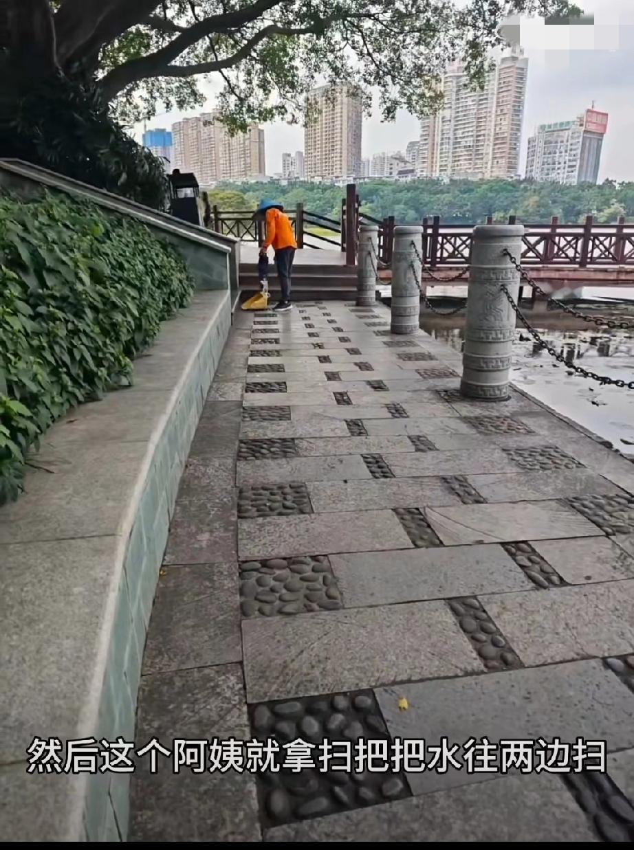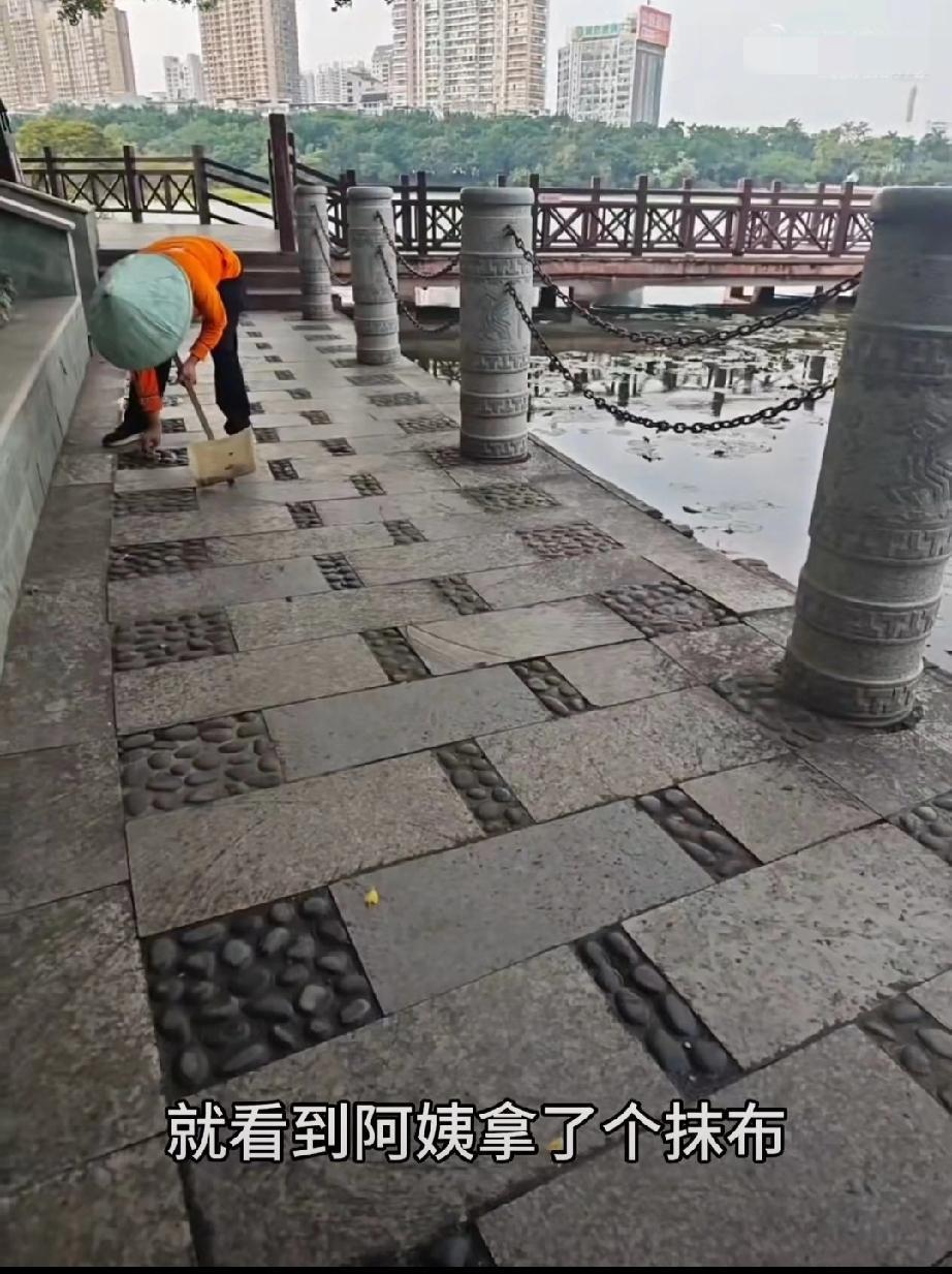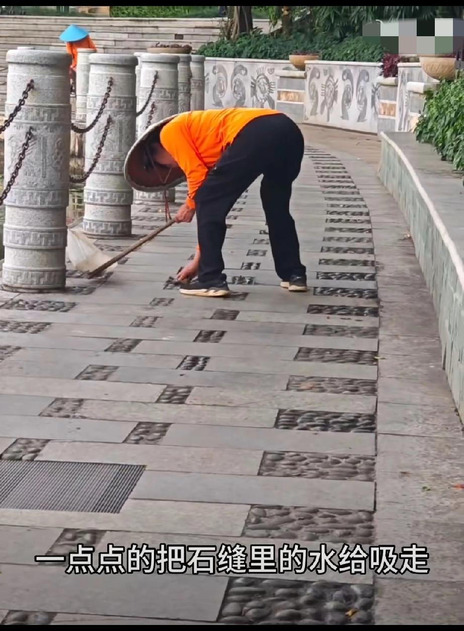 11月17日,网友发视频称领导要求阿姨将石缝里的水弄出来,环卫阿姨用抹布将公园石缝里的水吸出。发布者称:是谁让劳动者困在无意义的细节里?(来源:。。。。。。)大家怎么看?河道抽淤泥 城市公园清淤 公园湖水处理