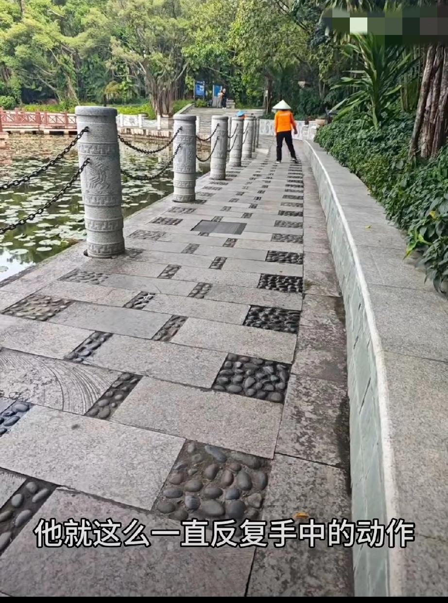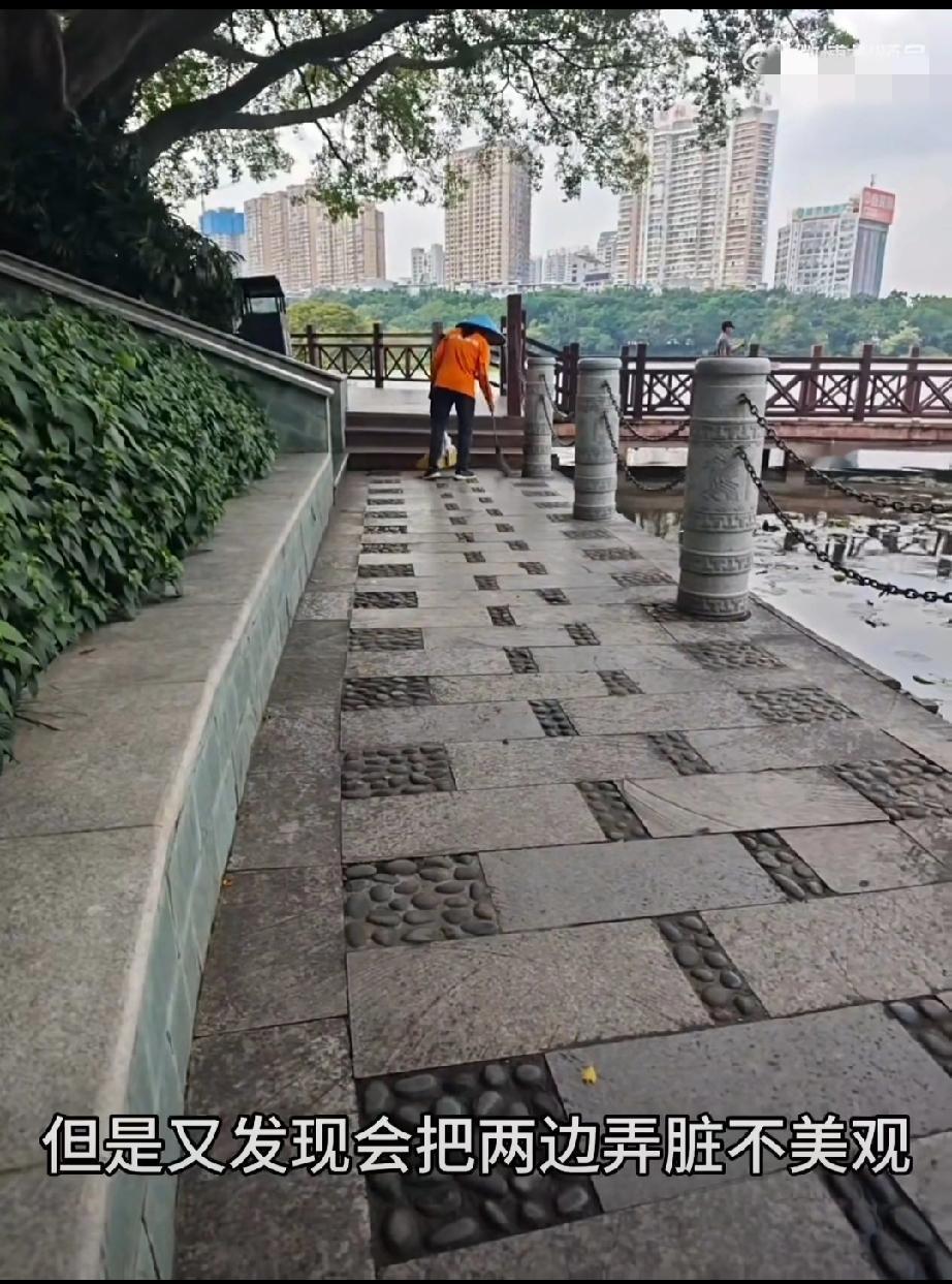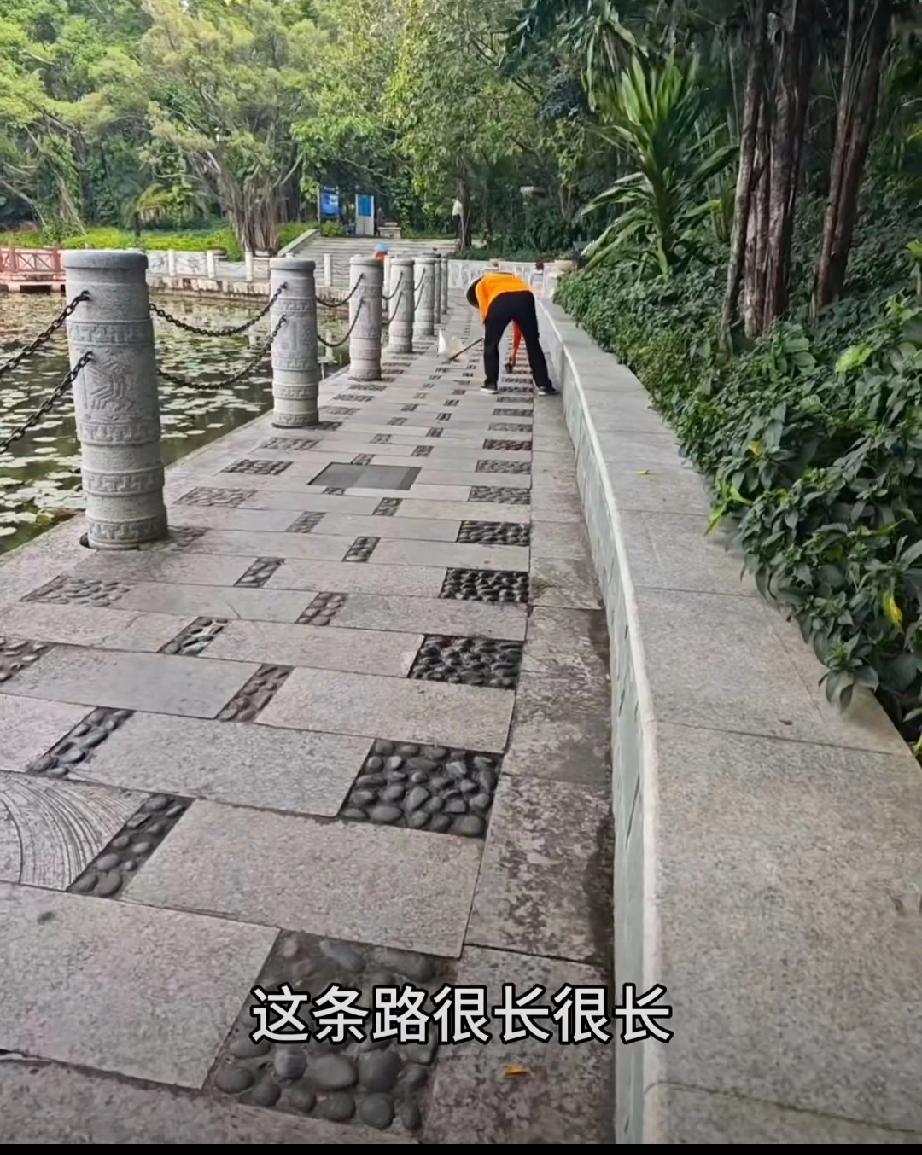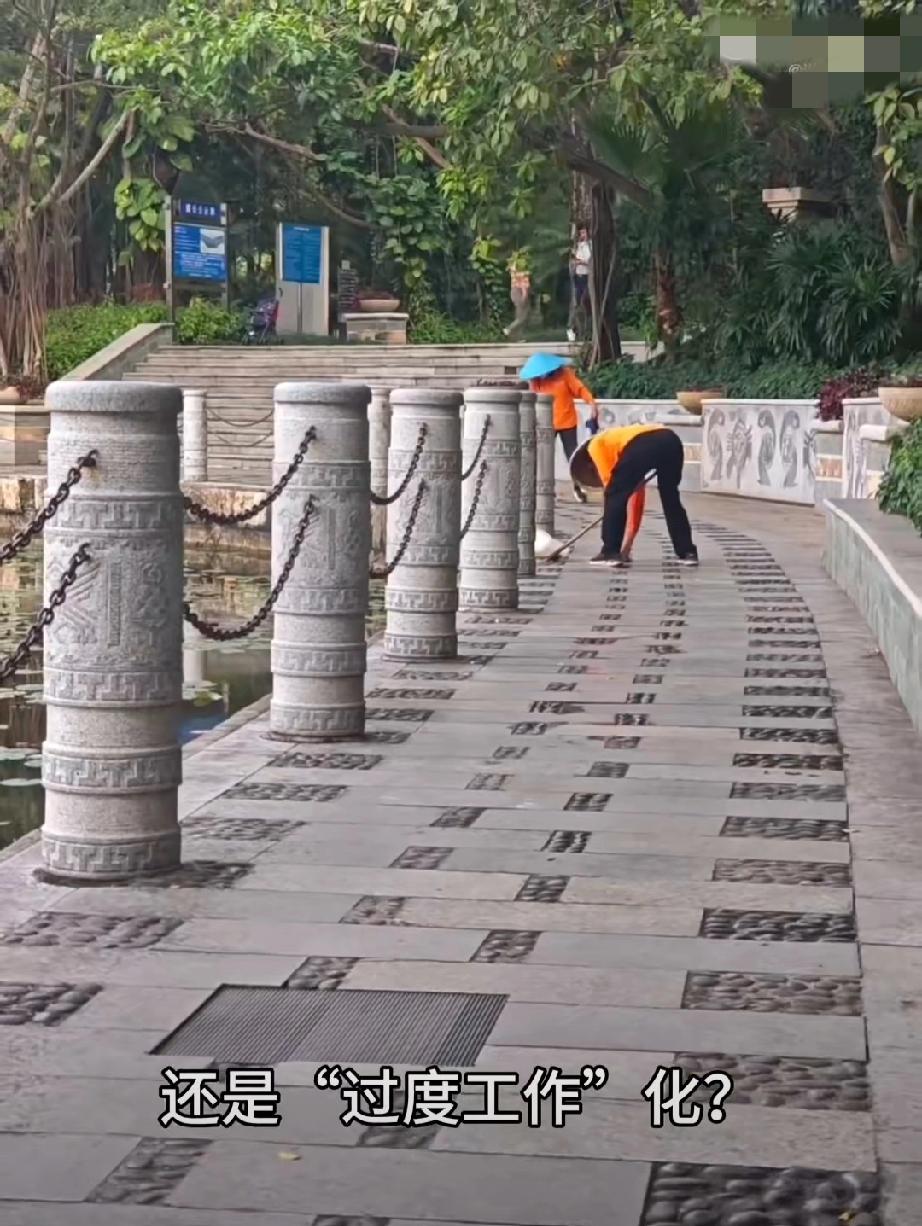 11月17日,网友发视频称领导要求阿姨将石缝里的水弄出来,环卫阿姨用抹布将公园石缝里的水吸出。发布者称:是谁让劳动者困在无意义的细节里?(来源:。。。。。。)大家怎么看?河道抽淤泥 城市公园清淤 公园湖水处理