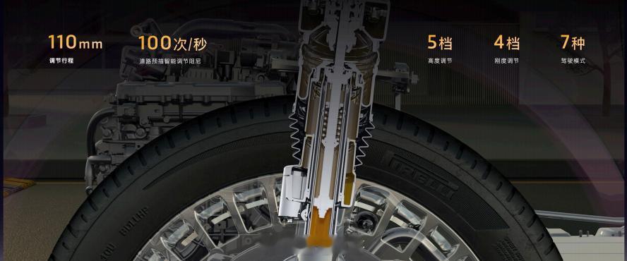 岚图这个三腔空悬有点意思,对标的基本是百万级的传统豪车,调节行程来到了110mm