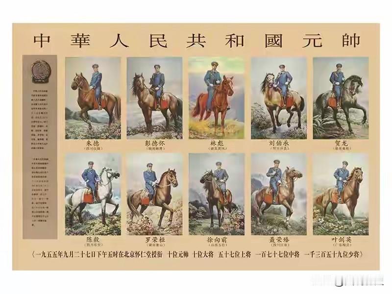两张十大元帅画像,他们分别是五十年代十大元帅骑马个人像和八十年代的十大元帅骑马合影像!这两张图曾经可以说是家喻户晓,基本每家中堂都会悬挂,我记得我小时候家里就挂的有,后来父亲去世了,家里翻新,我就把这两幅画像收了起来,不知道你们见过这两幅画像没?你们说有收藏的价值么?
