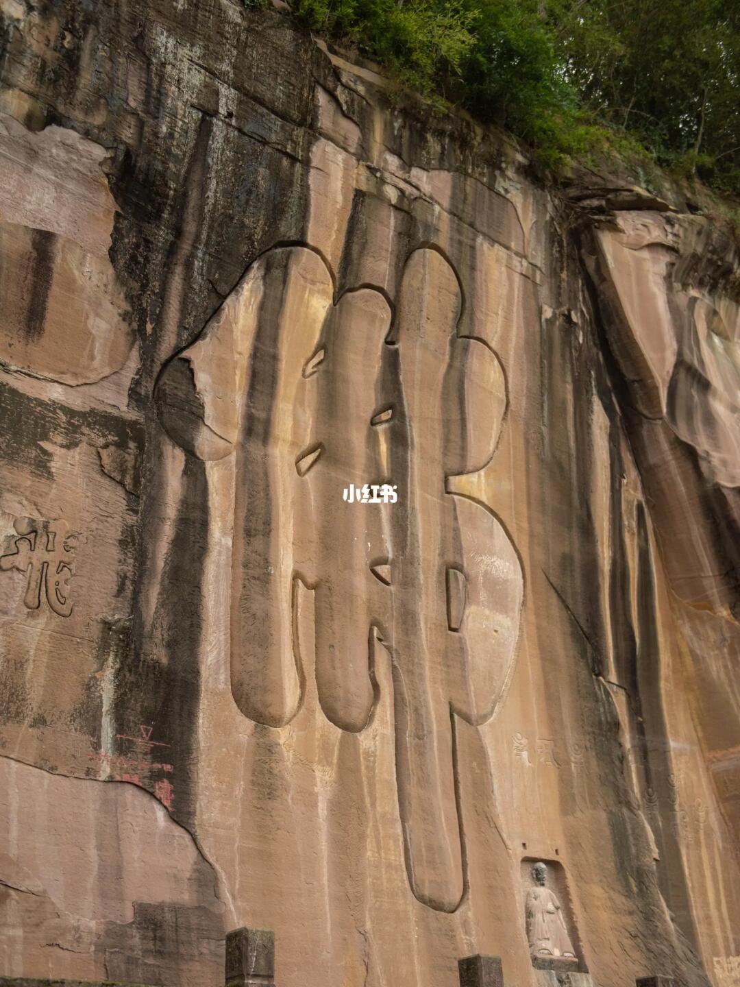 3⃣江边还保留有部分古代的摩崖造像,全国最大的摩石刻书法顶天“佛”字等
