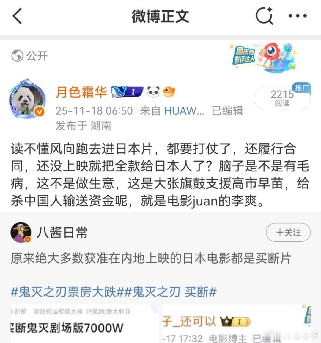 来来来,国家下的日本电影,你说支持国家的人是“饭圈违规”,你的饭圈饭的是高市早苗吗??你出来说清楚!!! 你还扣爱国言论的5粉,你个狗汉奸。