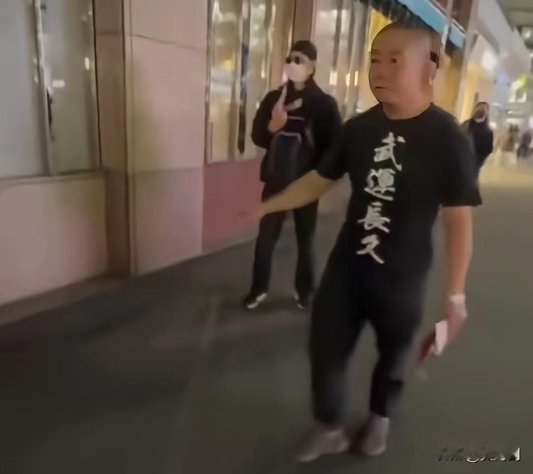 一对中国情侣在大阪游玩,被一群日本人围堵,吓哭了! 为首的黑衣人,前胸上赫然写