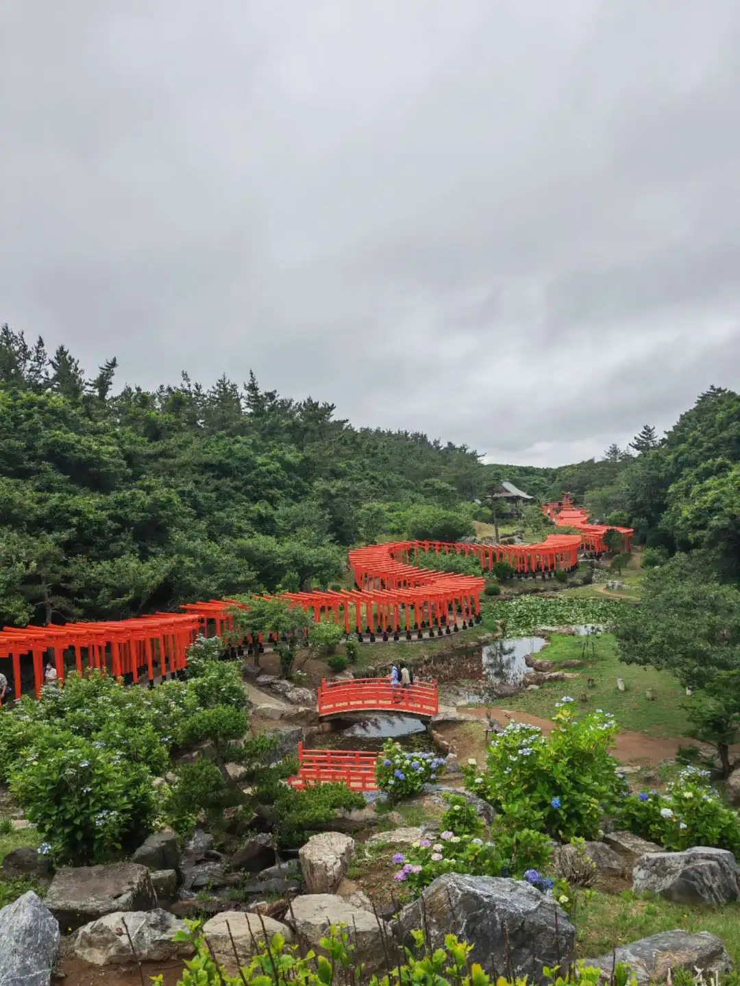 春赏樱、夏观绿、秋望枫、冬踏雪,每个季节都展现不同的美。从高台俯瞰,整齐排列的鸟居一览无遗,壮观又震撼。