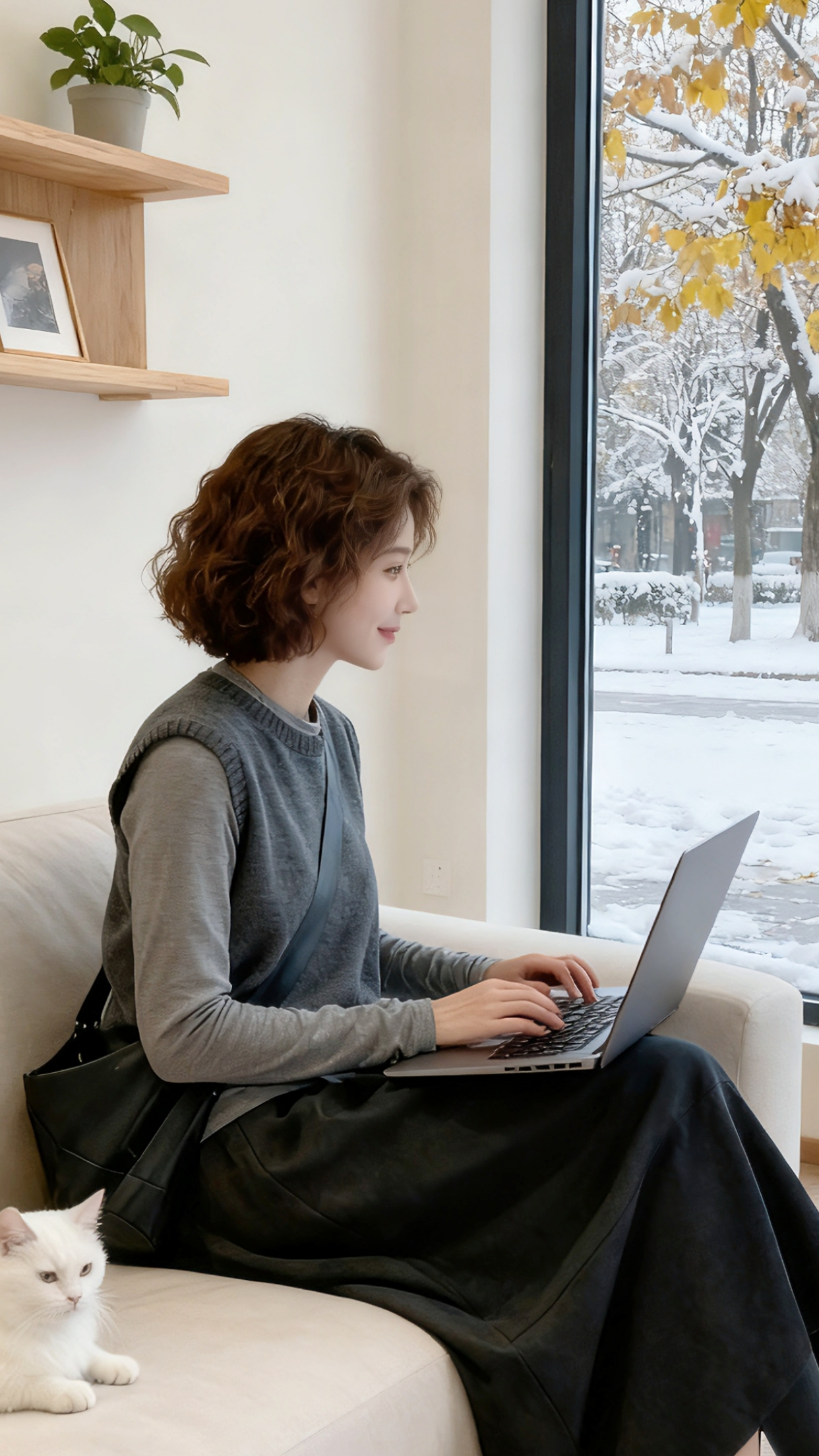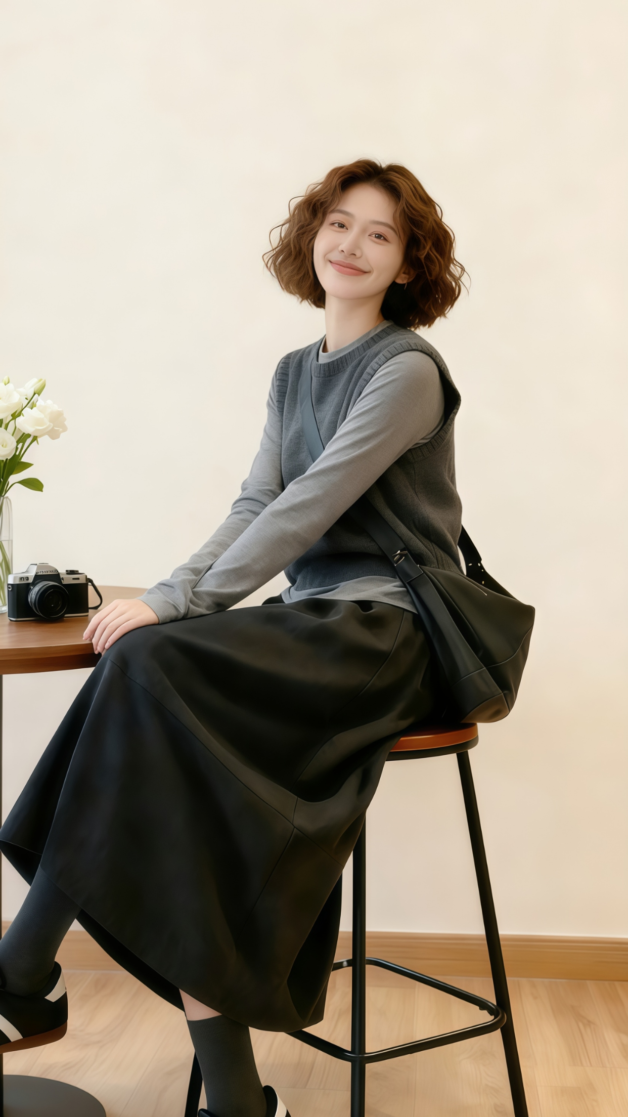 灰调针织马甲+打底的同色系叠穿,温柔又高级~