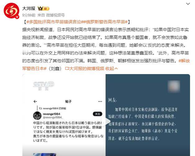 高市早苗还不知道悔改!俄罗斯也对日发出警告了! 自从高市早苗的言论出来后,不仅引
