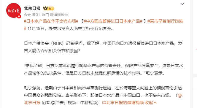 高市早苗还不知道悔改!俄罗斯也对日发出警告了! 自从高市早苗的言论出来后,不仅引起中方的不满,很多日本人也感觉很离谱,可是截止到目前为止,我们已经提出让她道歉并撤回说过的话,可是高市早苗并没有任何这方面的回应,随后我方也开始做出了很多对策针对高市早苗的错误言论,其中就是建议我们不去日本旅游,还有就是在11月19日的时候,我们再次暂停了进口日本水产品,记得在本月7日的时候,日本才开始出口水产品到中国,这一下又会让日本损失很多钱。 随后,俄罗斯外交部发言人扎哈罗娃18日接受采访的时候表示,高市早苗的错误做法非常危险,日本应深刻反省历史、汲取二战教训。其实除了俄罗斯之外,还有韩国、朝鲜也发出了警告,要是高市早苗再这样发展下去,估计我们就不用做别的,就光经济制裁他们,他们也会损失惨重。如今日本的经济已经开始受到影响,不知道高市早苗还能坚持多久。