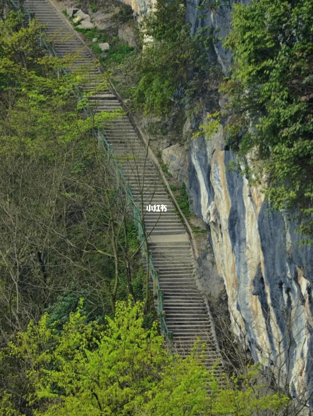 特点:悬崖绝壁里的道观,景色清幽秀奇,登山栈道趣味十足