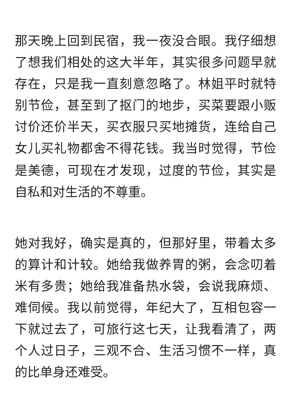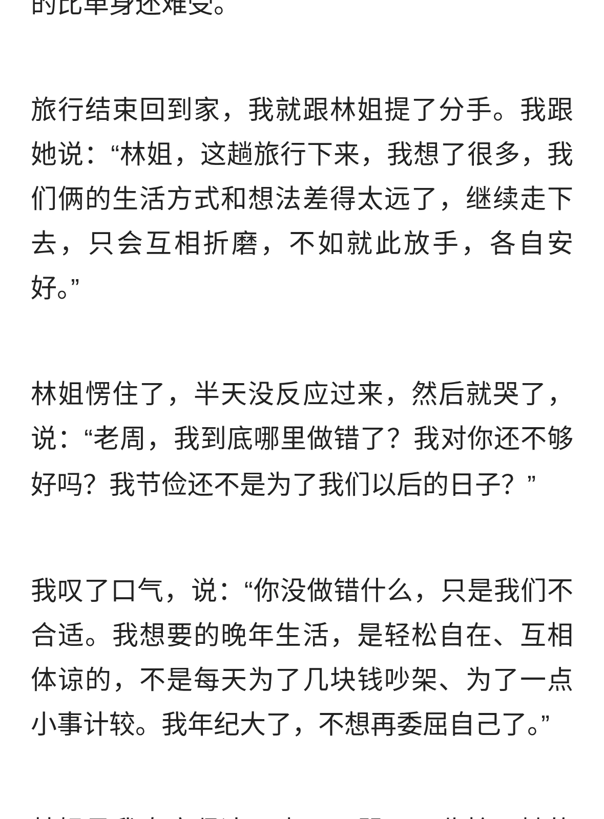 我63岁,和53岁女性旅行一周,回来我就提分手,实在难受…