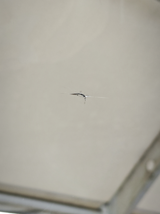 换了个玻璃被石子蹦了 高速快车道行驶,大车特别多,跑的不是很快,估计80左右,然后突然对面蹦过来一个石子。裂缝很大,正好在驾驶视野正对的地方。问了汽修厂,修的话,八百,裂痕能看不清,但是这个中心的花纹没办法去掉。只能4儿子店整个换掉。五千块。