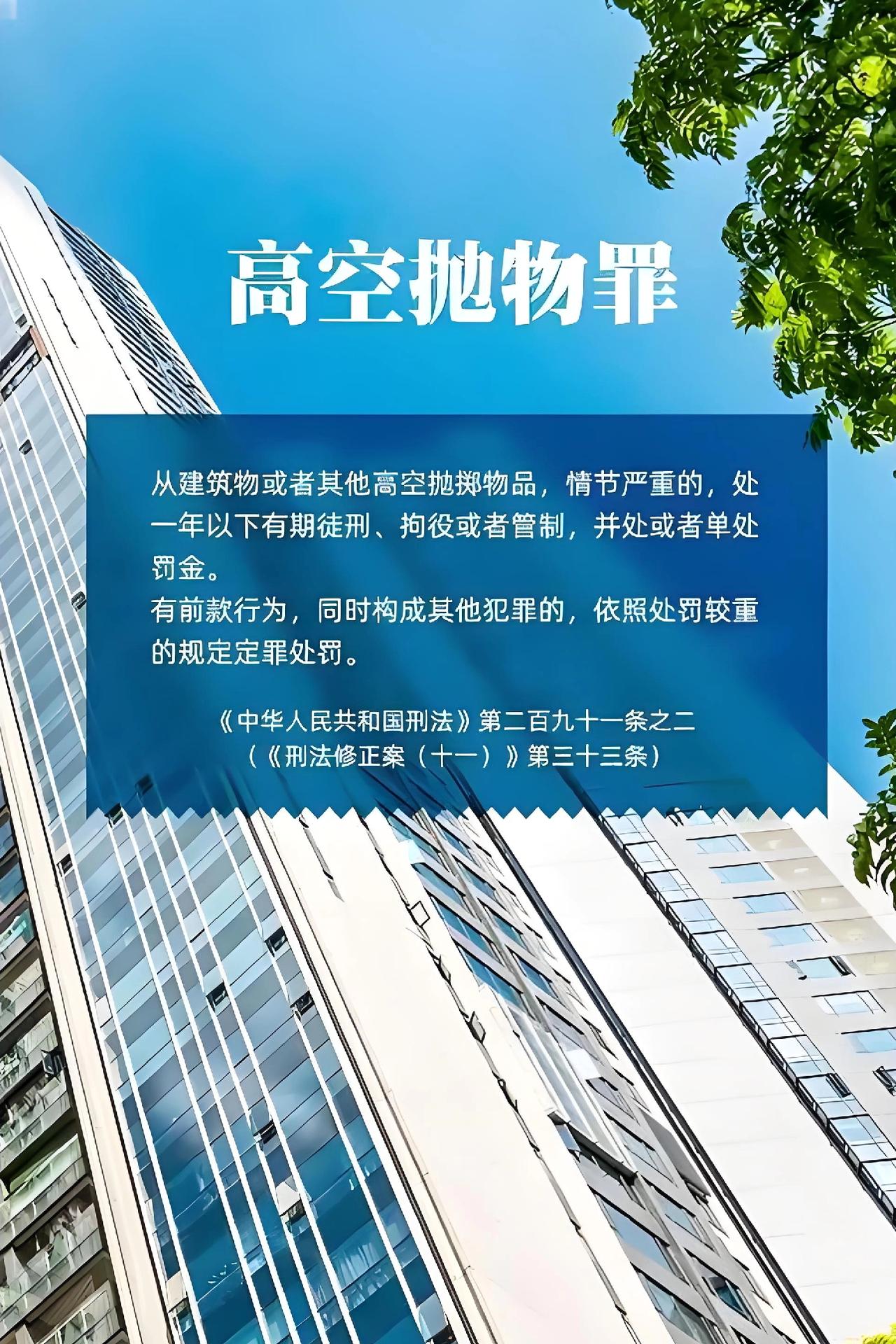 一栋楼5户同时起火!未熄灭烟头酿祸,高空抛物罪绝非“小事” 惊险一幕刷屏网络!浙江嘉兴平湖海德城小区近日突发火情,一栋居民楼内5户人家接连遭殃,而引发这场危机的,竟是一个随手抛下的未熄灭烟头。这起事件再次敲响警钟:高空抛物不仅是不文明行为,更可能触犯《刑法》中的高空抛物罪,需承担刑事责任。 据视频记录,事发时14层住户肖女士正哄孩子睡觉,突然闻到浓烈焦糊味。打开房门一看,客厅已被烟气笼罩,阳台方向还飘着火星,她立刻拨打119报警。万幸的是,社区网格员刚好巡查到该楼栋,发现火情后迅速取用灭火器,及时扑灭了初期火星,避免火势进一步扩大,消防员赶到时现场已无明火隐患。 后续排查显示,肖女士家阳台晾晒的衣被是起火起点,未熄灭的烟头掉落其上引发燃烧,高温甚至将阳台玻璃窗烤得炸裂。燃烧的衣被碎片往下飘落,又引燃了15层、16层、12层和8层住户晾晒的衣物被褥,5户人家均出现不同程度财产损失。 根据《刑法》第二百九十一条之二规定,从建筑物或者其他高空抛掷物品,情节严重的,构成高空抛物罪,可处一年以下有期徒刑、拘役或者管制,并处或者单处罚金 。此次抛掷未熄灭烟头的行为,在人员密集的居民小区高空实施,引发多户起火,已符合“情节严重”的认定标准,绝非简单的“无心之失”。要知道,烟头表面温度可达200-300℃,中心温度更是高达700-800℃,远超棉麻、衣物等可燃物的燃点,随手丢弃极易引发火灾。 高空抛物罪的设立,就是为了严惩这类漠视公共安全的行为。一个小小的烟头,差点酿成重大安全事故,教训极其深刻。在此提醒大家:丢弃烟头前务必彻底熄灭,切勿高空抛掷任何物品;阳台晾晒衣物时,也要留意周边安全隐患。你身边有高空抛物的情况吗?欢迎留言讨论~ 浙江高空抛物起火 高空抛物罪 消防安全警示 拒绝高空抛物