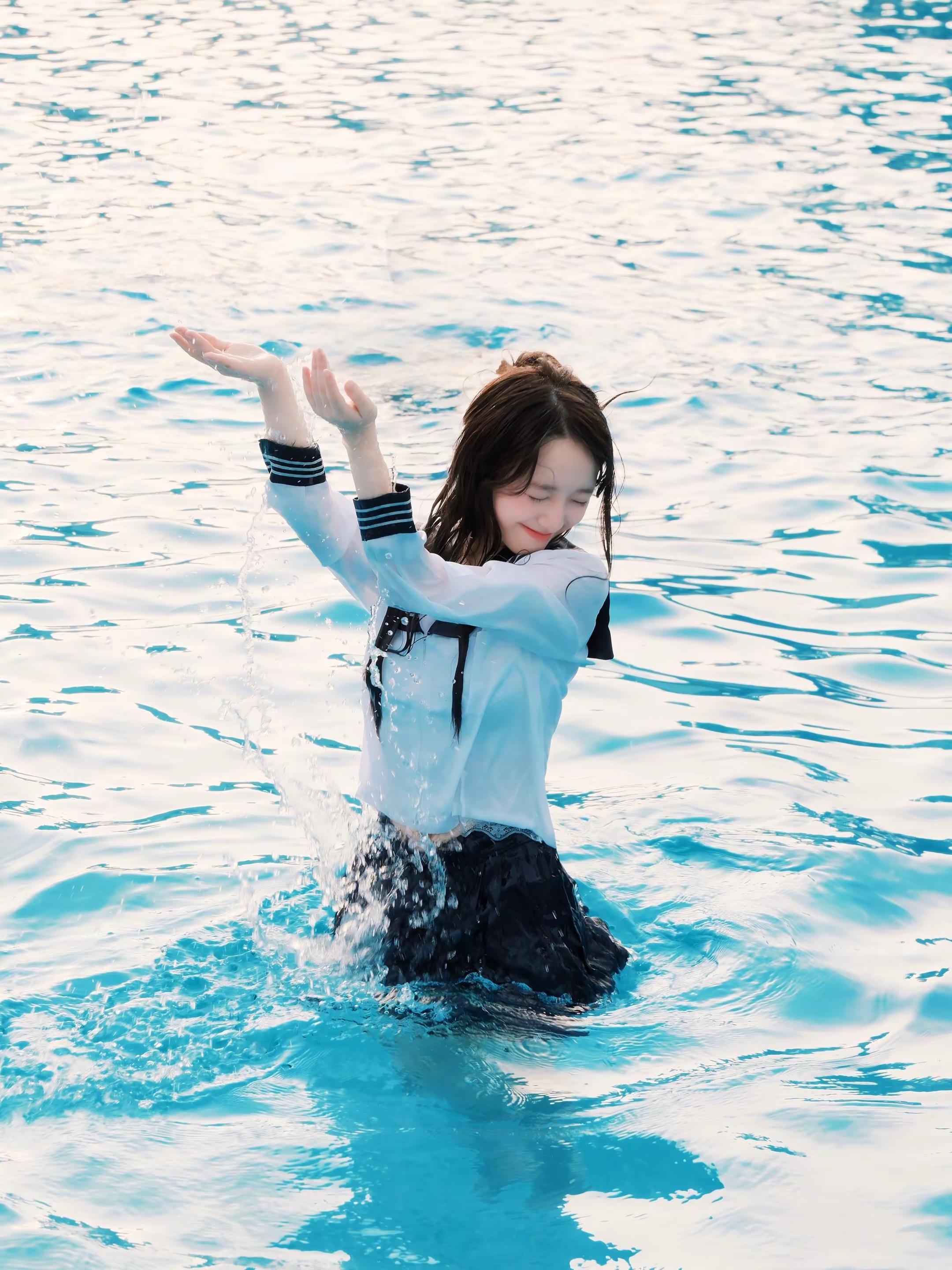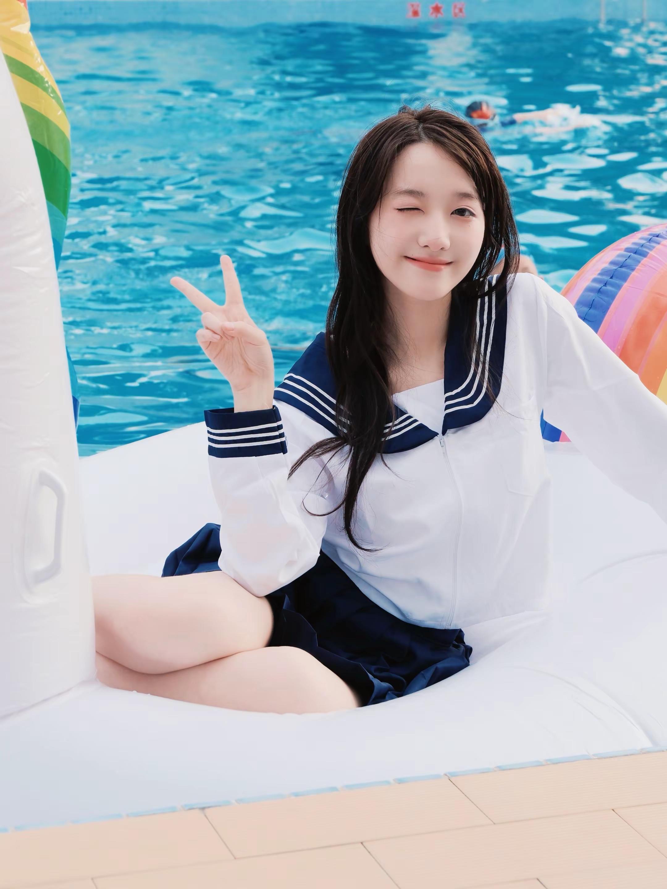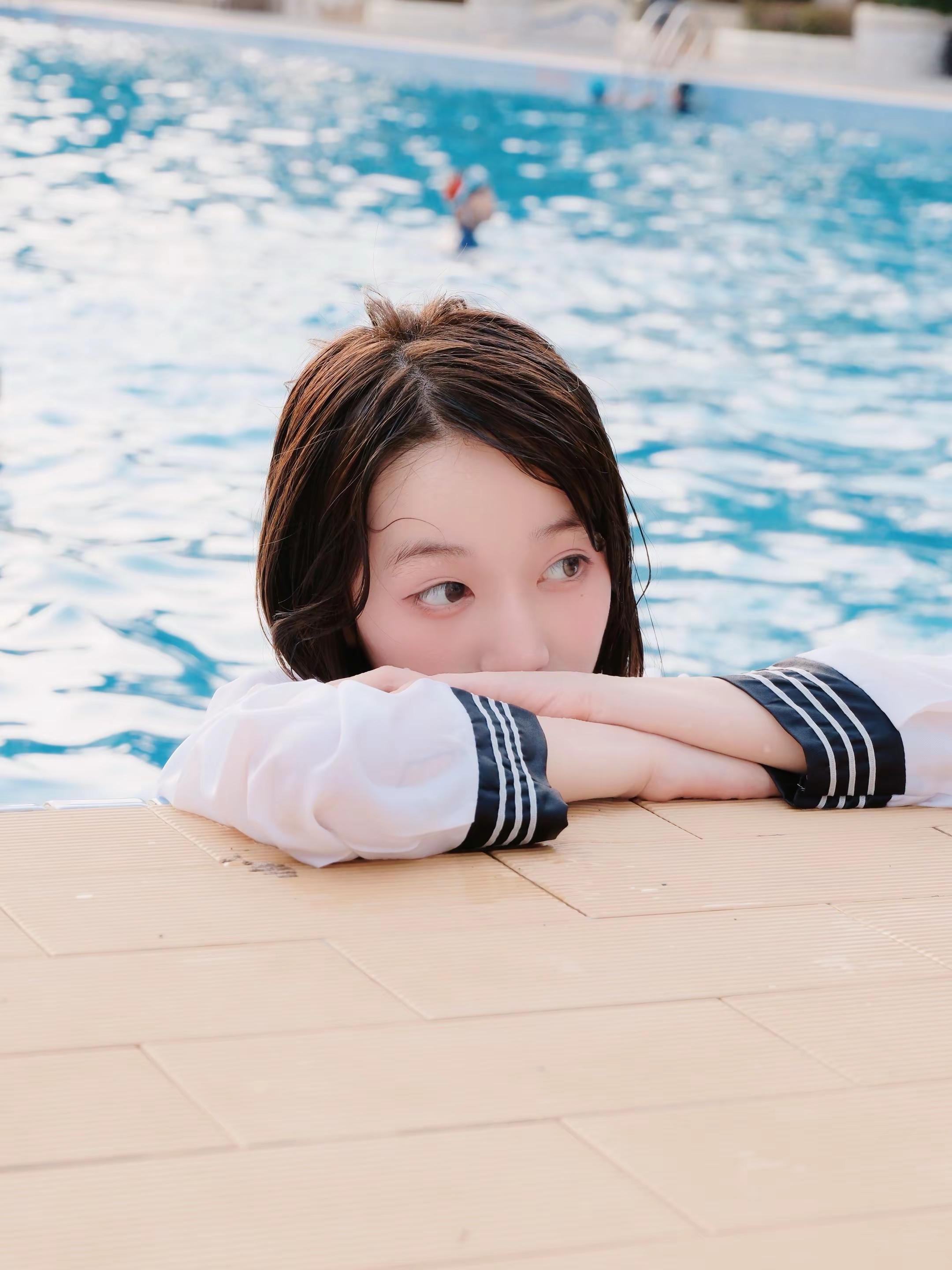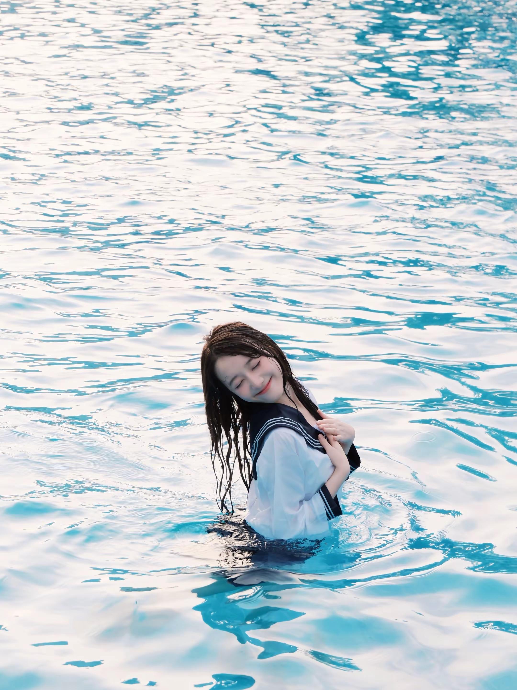泳池拍照|泳池和jk太搭了❤️🌊。模特小姐姐超美 又是心动的一天。