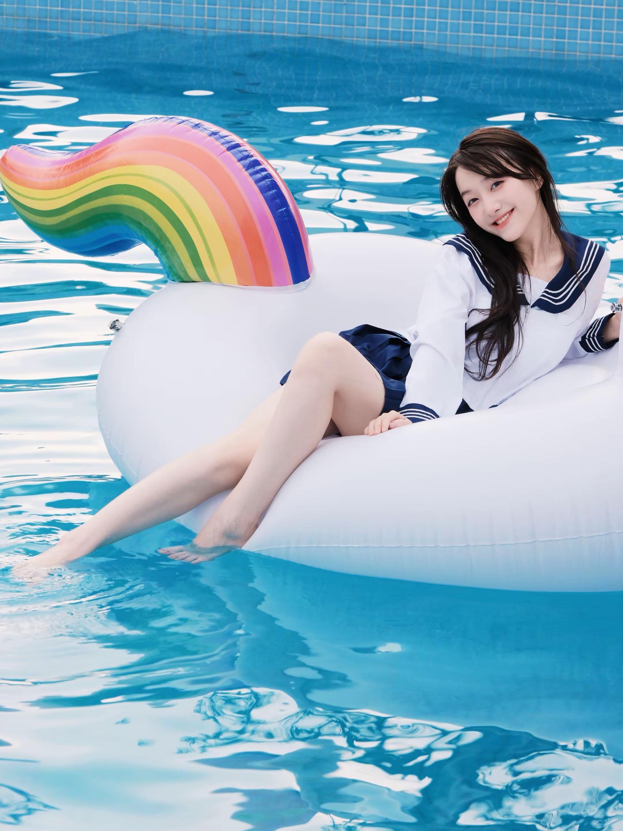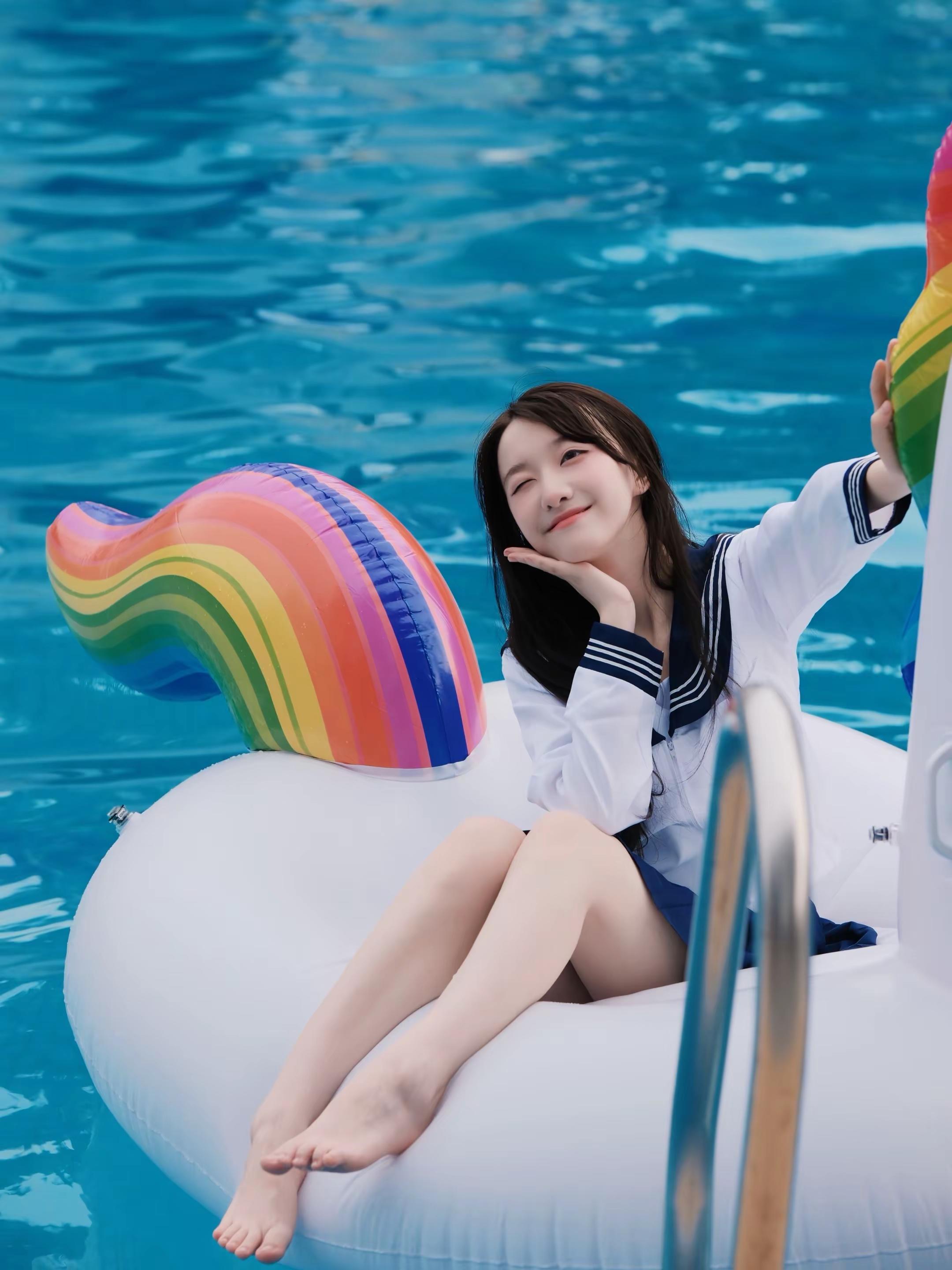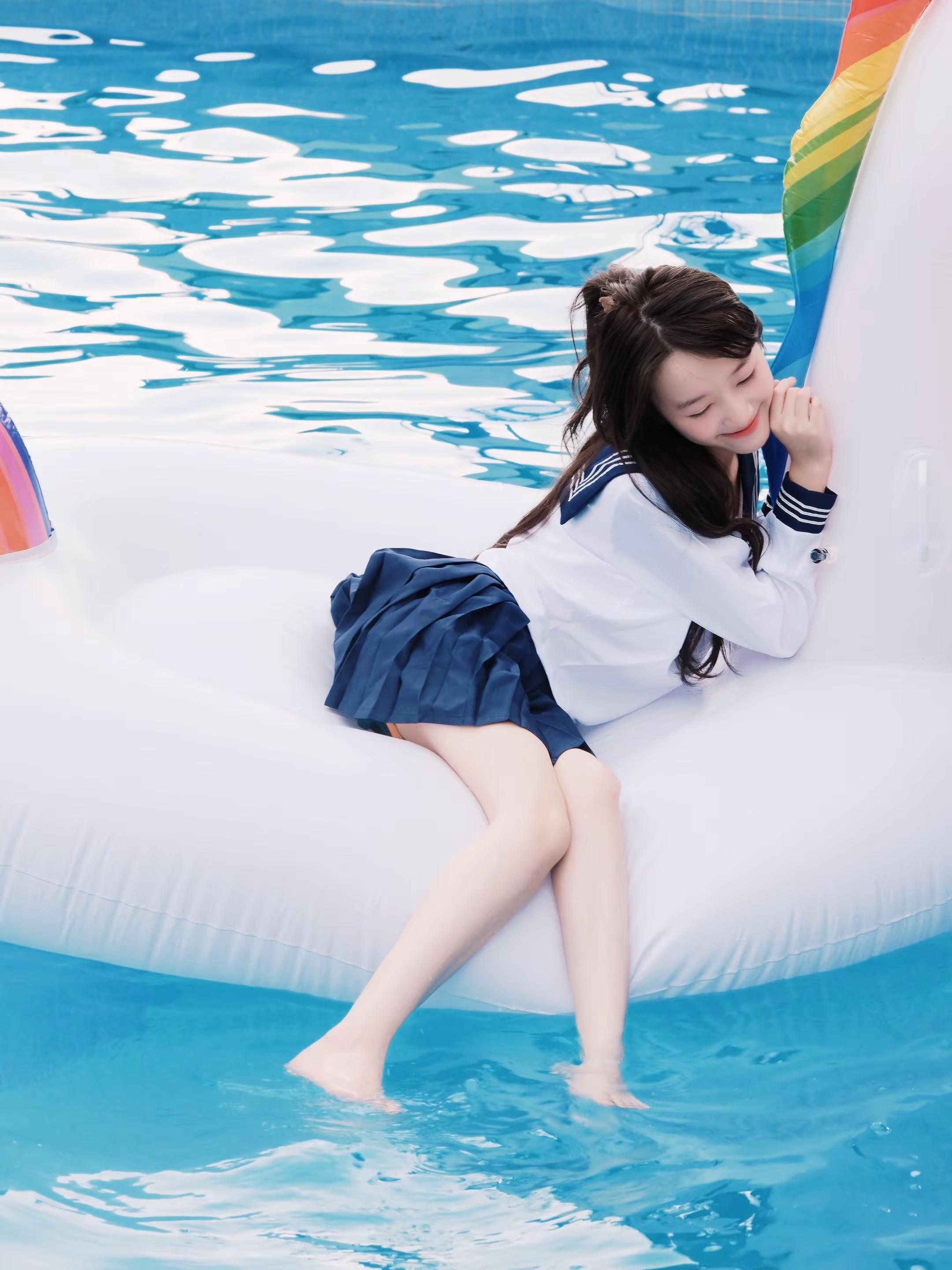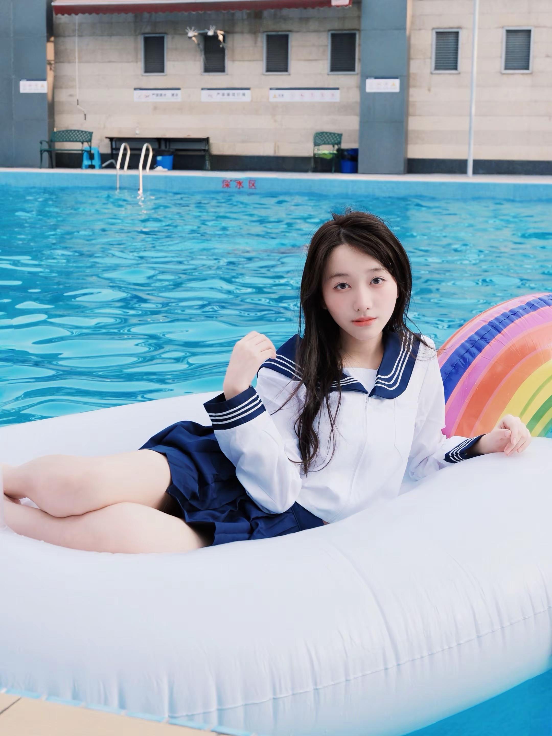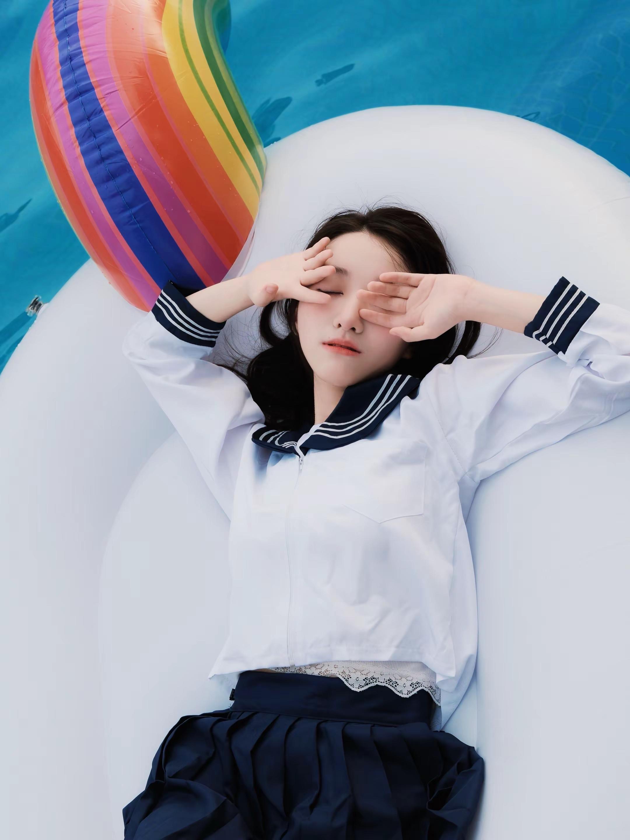 泳池拍照|泳池和jk太搭了❤️🌊。模特小姐姐超美 又是心动的一天。