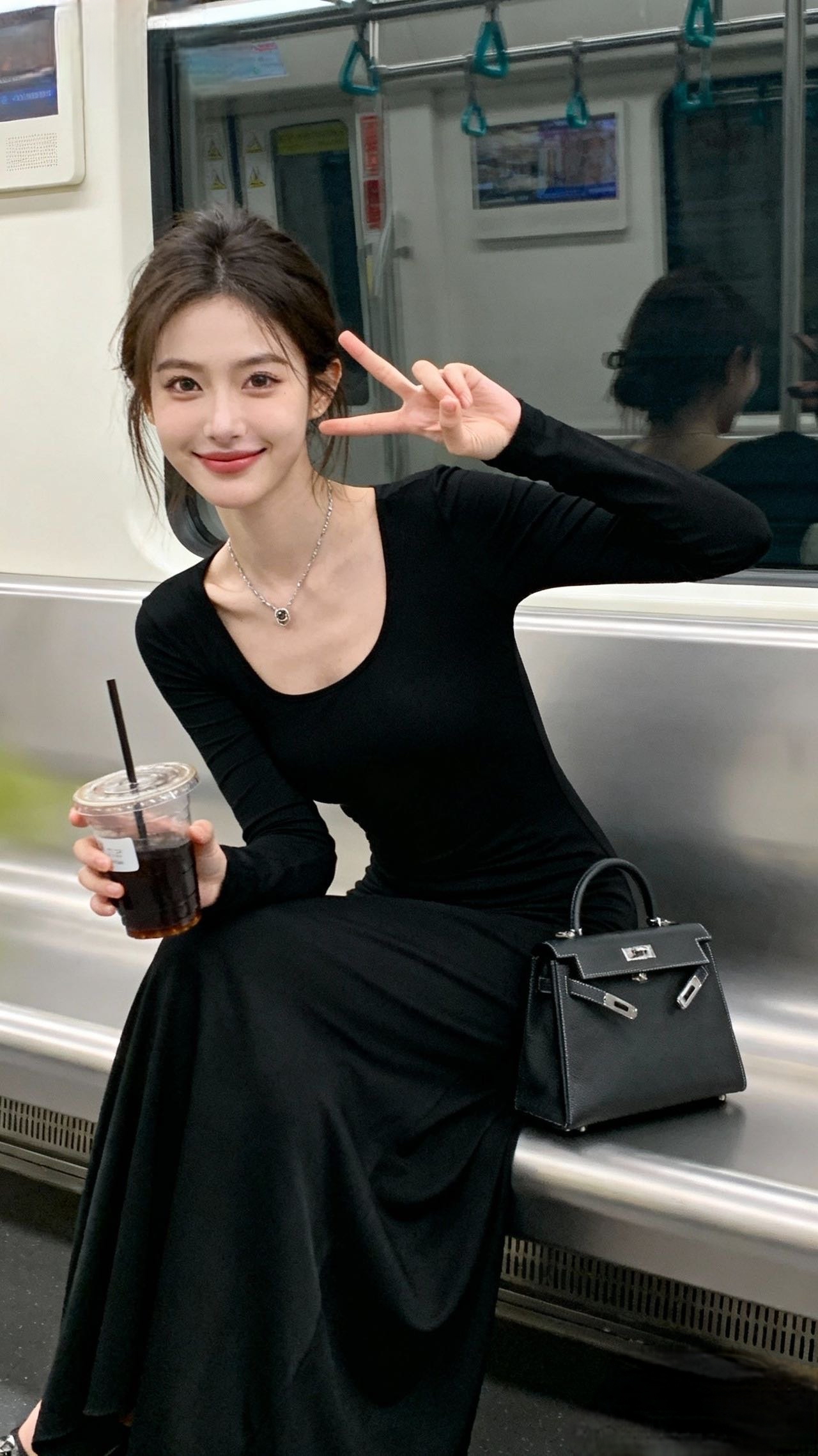 今天坐地铁出门,这身黑裙直接把“舒适又好看”焊在身上啦~ 这件长袖方领黑裙是我的通勤宝藏!软软的面料贴在身上完全不闷,方领刚好露出锁骨和肩线,低调又有点小性感~搭了条细项链提亮,再挎个焦糖棕的包包,冷调里添了点暖感,随便一穿都很出片~ 地铁里的风轻轻吹着裙摆,手里的冰饮甜滋滋的,连通勤路都变得轻松起来~简单的穿搭反而最衬日常的松弛感~绝美黑裙穿搭 黑裙穿搭 绝美黑裙穿搭 黑裙穿搭 简约黑裙穿搭 通勤黑裙穿搭 黑裙显瘦穿搭 休闲风黑裙 简约风黑裙 气质短袖黑裙 美女人像群 高清美女 高雅气质美女