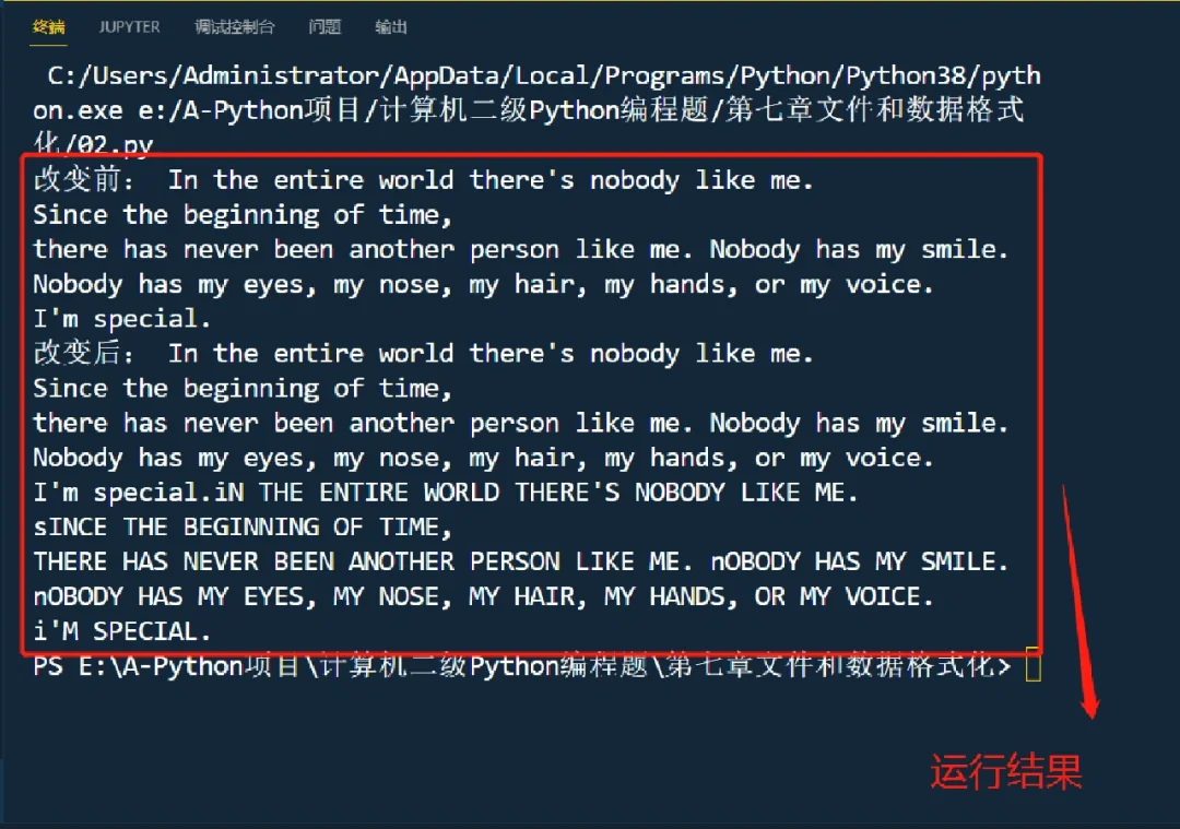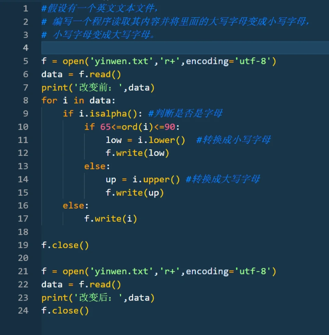 [二R]假设有一个英文文本文件,编写一个程序读取其内容并将里面的大写字母变成小写字母,小写字母变成大写字母。