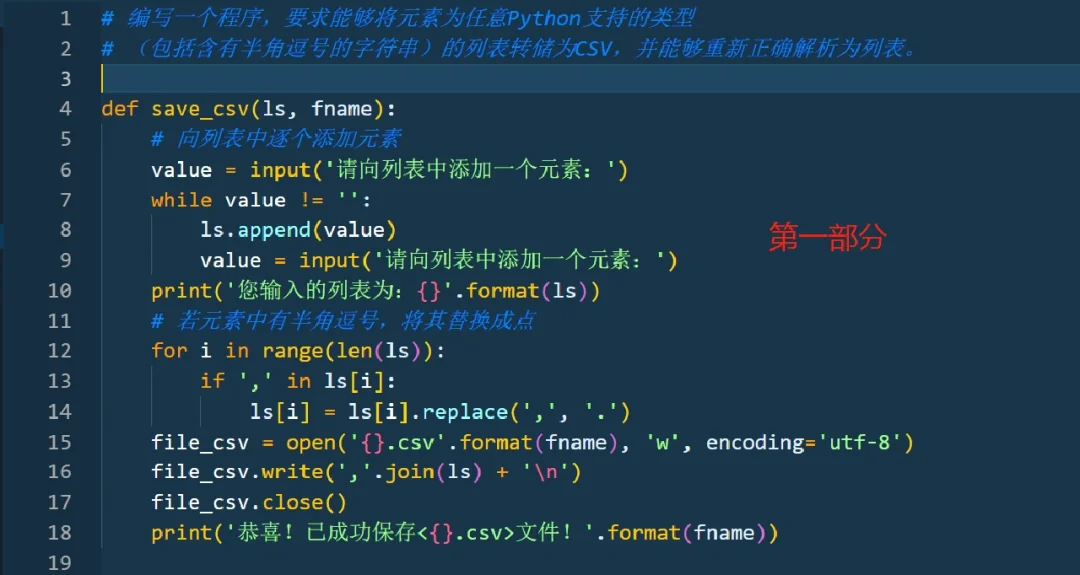 [五R]编写一个程序,要求能够将元素为任意Python支持的类型(包括含有半角逗号的字符串)的列表转储为CSV,并能够重新正确解析为列表。