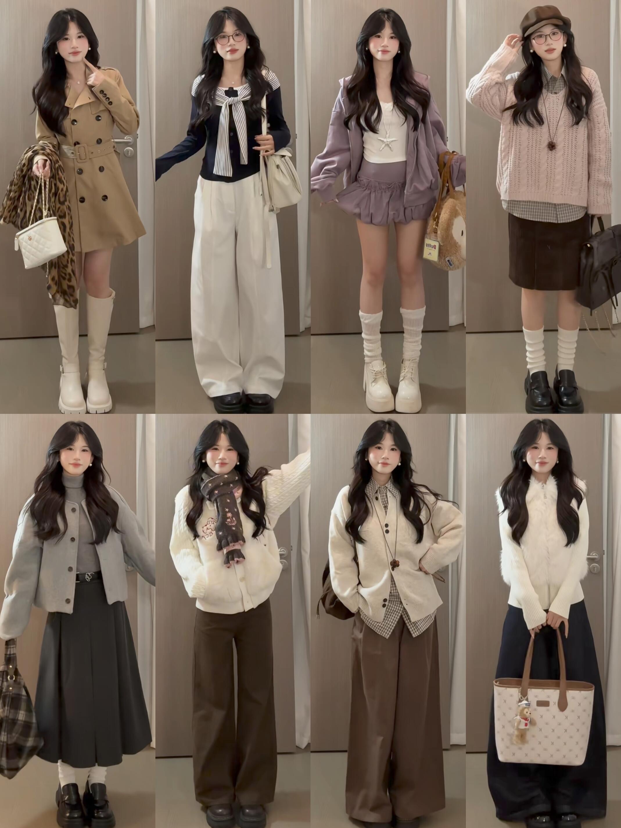 减龄少女感穿搭 宝子们快看这波秋冬穿搭杀疯了! 学院风套装减龄吸睛,大衣叠穿腔调拉满,卫衣配阔腿裤慵懒随性…… 从甜妹到御姐,从复古到通勤,每套都把“显瘦、保暖、风格感”捏得死死的。 毛绒外套软萌治愈,长款大衣气场全开,短款夹克利落吸睛; 下装既有百褶裙的甜,又有阔腿裤的飒,还有牛仔裤的随性。 配饰更是点睛——贝雷帽复古、围巾保暖、包包提升质感,每套都精准踩中时髦点。 风格切换无压力,把秋冬穿搭的“实穿性”和“时髦感”焊死,这个季节跟着穿,每天都能slay全场,绝绝子!