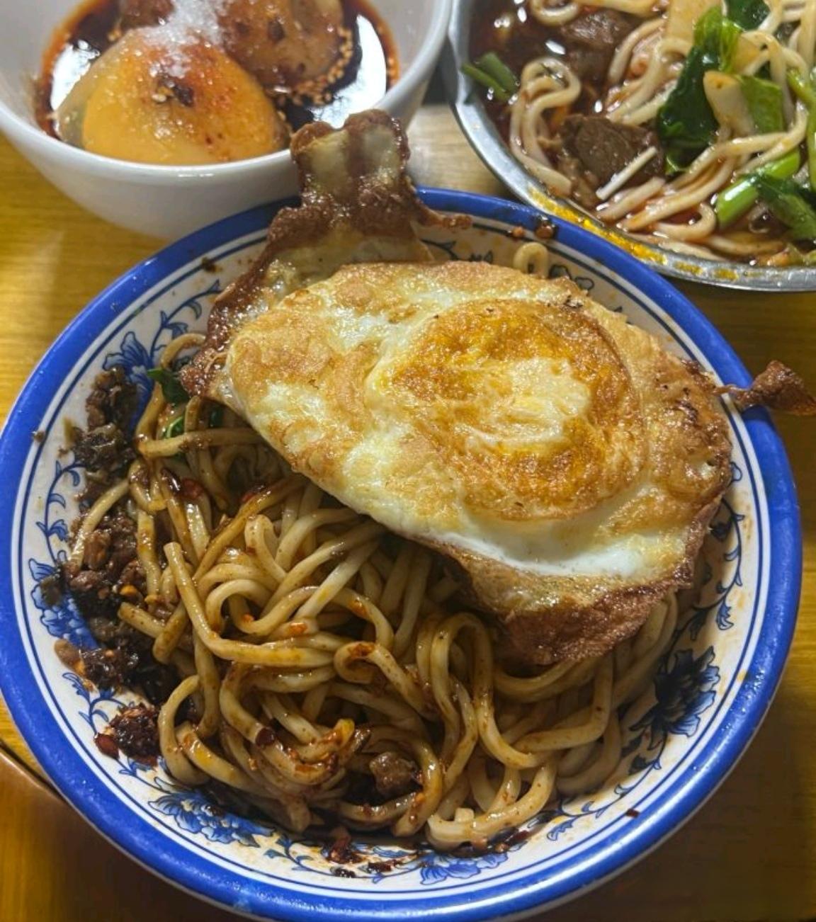 乐山干臊面哪家强? 干臊面做为乐山特有的地方小吃,在乐山任何一家地方面馆都提供,就如河南的糊辣汤,西安的肉夹馍一样,满大街都是。但要说哪家最好吃,则仁者见仁,智者见智了,完全是每个人的口味各不相同,结论不同。 结合这么多年接待外地朋友来乐山带他们品尝的乐山干臊面的汇总,我总结了三家好评率最高的干臊面,没有排名,各有特色。 1、第一家位于慧园街靠近长江市场这头的“正宗味精素面”,他们家的干臊面选用的是较粗的棍棍面,芽菜臊子炒的很干香,面条拌料浓郁香辣,几十年了口味一直非常稳定。他们家的泡菜和卤肉也很棒,就着面再吃一口红油泡菜和沾着干碟的卤肉别提多惬意了。(他们家面条里不爱放青菜,如果需要要提前给老板说)。 2、第二家位于油榨街靠近江边的“老本行面馆”,他们家炒的芽菜臊子外地朋友评价最好吃。他们家选用的面条要细一些软一些,打底拌料能吃出老乐山的味道。另外他们家的凉拌皮蛋这几年也深受食客们热捧,皮蛋以乐山传统的甜辣口味为主,吃不惯这个味的朋友慎点。(在上中顺逛的朋友可以去这家) 3、第三家位于较场坝和东大街交接的“胖大娘面馆”。他们家的干臊面没有那么干,有一点点润滑也不失口感,芽菜臊子给的很足,他们家的醪糟蛋也很有特点,配着面主打一个爽滑。(在乐山港玩的朋友可以去他家) 三家面馆都是开了几十年的老店,做的都是本地老街坊的生意,一般来说不会踩雷。大家如果还有好吃的干臊面收藏,欢迎在评论区给外地的朋友推荐。🍜🏻