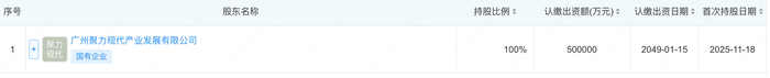 公开资料显示,被收购的两家企业分别成立于2018年和2019年。收购方广州聚力背景显赫,该公司成立于2024年10月,注册资本26.4亿元,由广州产业投资控股集团有限公司、广州南沙开发建设集团有限公司等六家国有企业共同持股,具备强大的产业整合与资金支持能力。