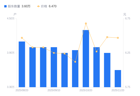 近一年(2024年11月20日至2025年11月20日),大连热电A股股东户数从4.94万户,减低至3.6万户,降幅27.13%,区间股价下跌11.00%。