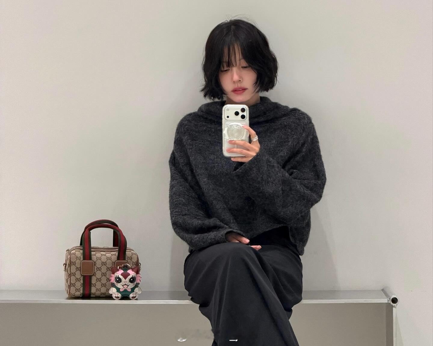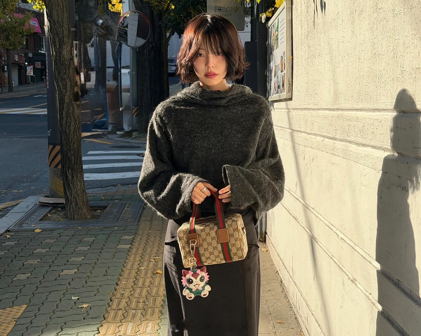 这身黑套装太好看了!短款上衣+短裙刚好显腿长,光腿神器配厚底长靴