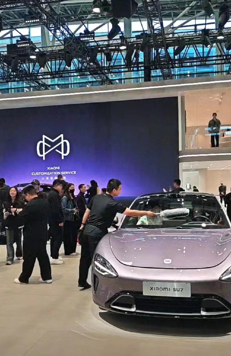 广州车展小米汽车展台,这个人气可还行? 昨天是媒体开放日,不对公众开放,因为小米
