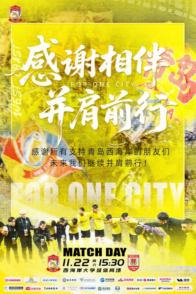 青岛西海岸首发:1-李昊、5-里切利、6-徐彬、22-杨希、36-孙捷、17-陈柏良、20-何龙海、21-依明卡日、23-马特乌斯、9-阿齐兹、10-内尔松卢斯