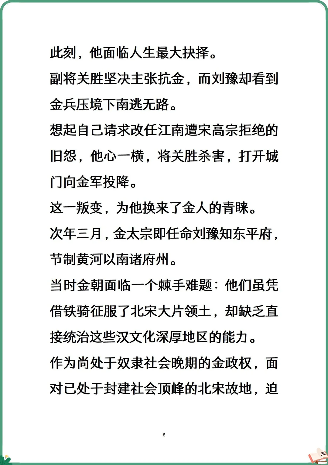 记录吧就现在 [可怜R]在金兵铁骑踏破汴京的尘埃中,两个特殊的政权——伪楚与伪齐,先后被扶上历史舞台。 [可怜R]它们如同傀儡戏中的木偶,在宋金对峙的刀光剑影中,演绎了七年光景的浮沉。 [可怜R]这段往事,充满了人性的挣扎与家国命运的无奈。