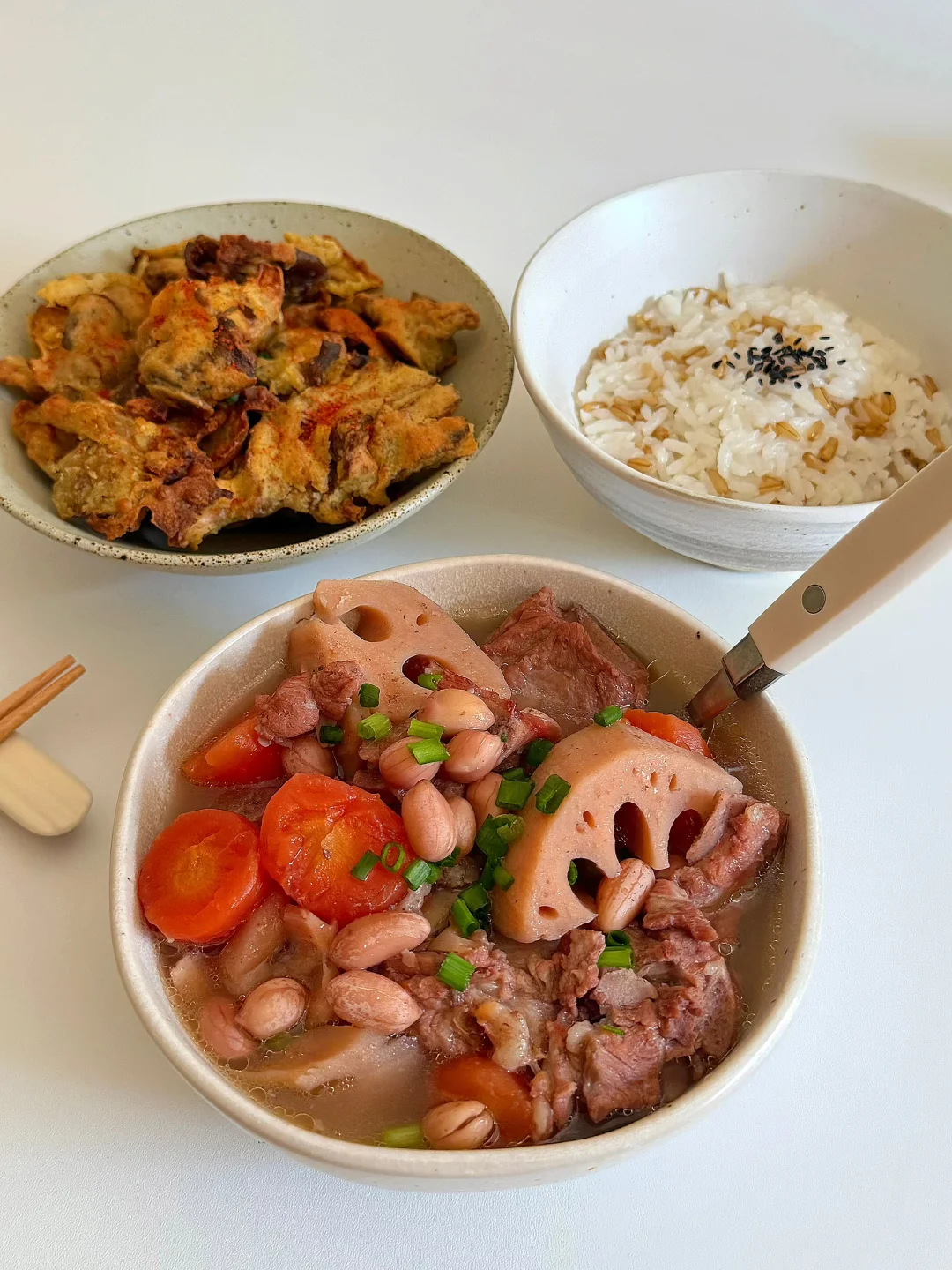 谁懂…这样吃真的好舒服!! 干净健康,营养美味~ 吃完没啥负担感,肠胃和身心都巨满足[萌萌哒R] . 如果你不知道吃什么,可以来试试这样的搭配! 少油少盐,吃得丰富,减脂期也可以大满足! . 1️⃣ 番茄烩丸子➕西葫芦炒蛋 2️⃣ 萝卜片肉丸汤➕西兰花炒肉末 3️⃣ 滑蛋芝士肉饼盖饭➕菠菜鱼丸汤 4️⃣ 洋葱肥牛炒乌冬➕秋葵蒸蛋 5️⃣ 冬瓜丸子汤➕豆芽炒鸡蛋 6️⃣ 放纵餐:红油口水鸡➕蒜蓉生菜 7️⃣ 花生胡萝卜莲藕排骨汤➕低脂版炸平菇 做法都放在图片里了哦~~单个教程可以在🐷页往前翻翻!