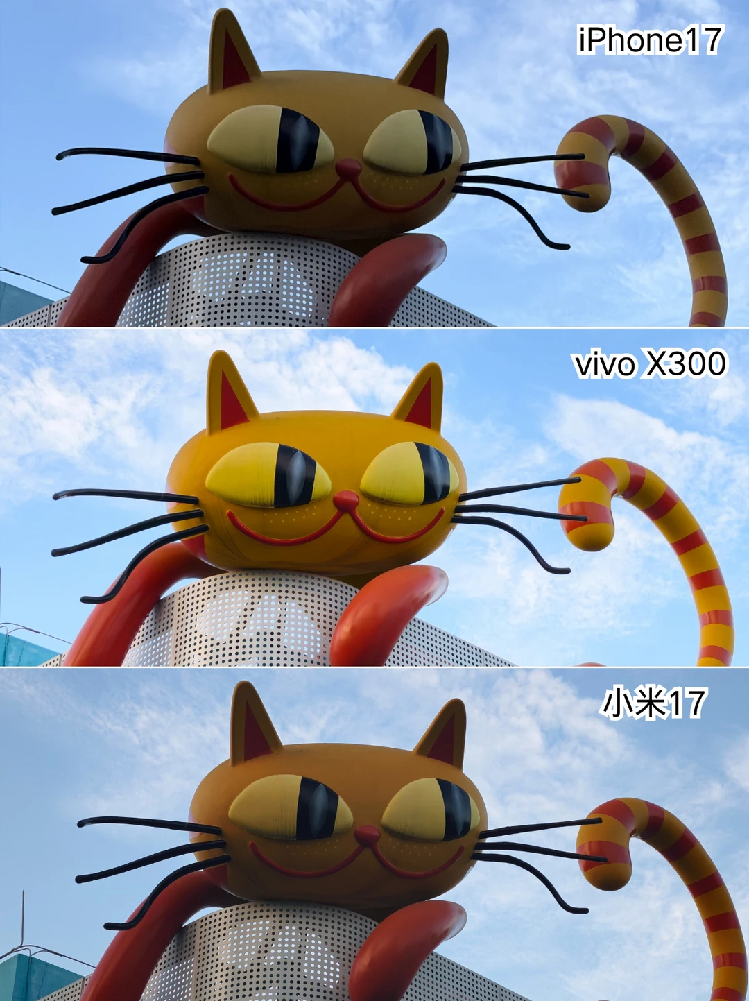 今儿闲来无事想试试手上三款标准版旗舰的随手拍效果,就带着果子17、小米17、vivo X300出门扫街了