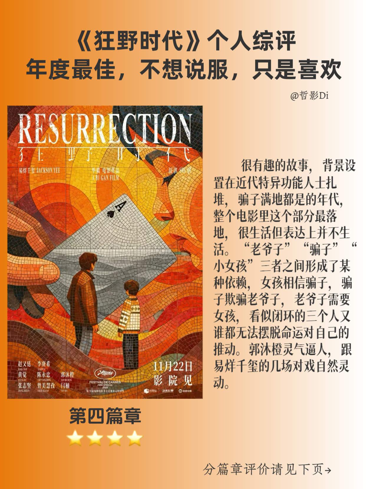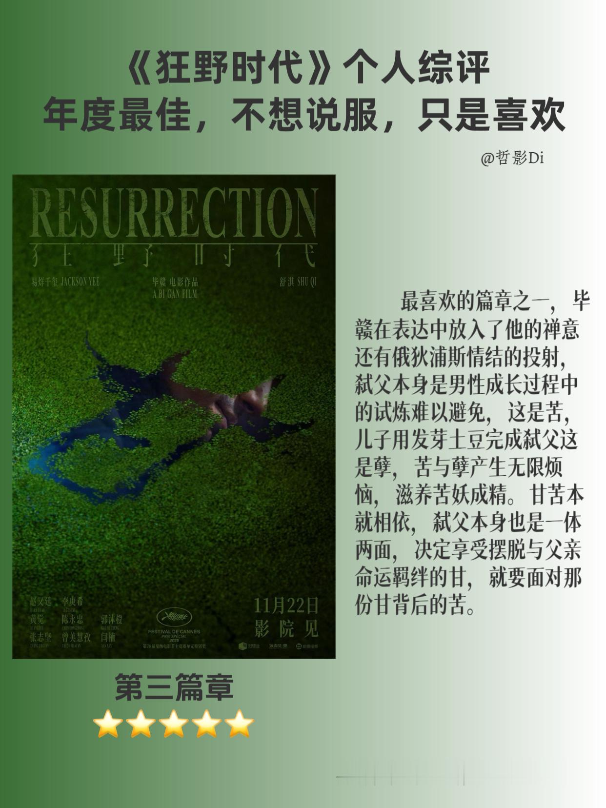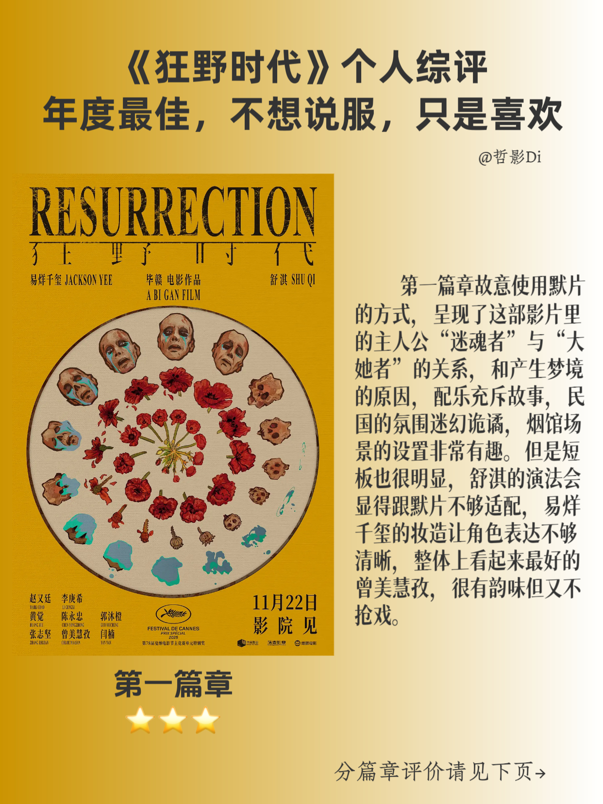 年度最佳!一场穿越百年的梦,深邃、瑰丽、引人入胜、无法自拔。毕赣用他擅长的方式,把梦境搬上了大银幕,虚虚实实,真真假假,飘飘荡荡的无力感,从银幕蔓延开来,真正的造梦电影。这部电影不适合理性判断,需要观众放下客观,完全投入去感受,然后你就会发现,原来光影的虚实转换,人影的彼此交叠之间,其实就是梦的样子。天马行空,复杂奇妙,虚实结合,跳进跳出,难以捉摸,还不受控制的一个个场景,就是梦本来的样子!