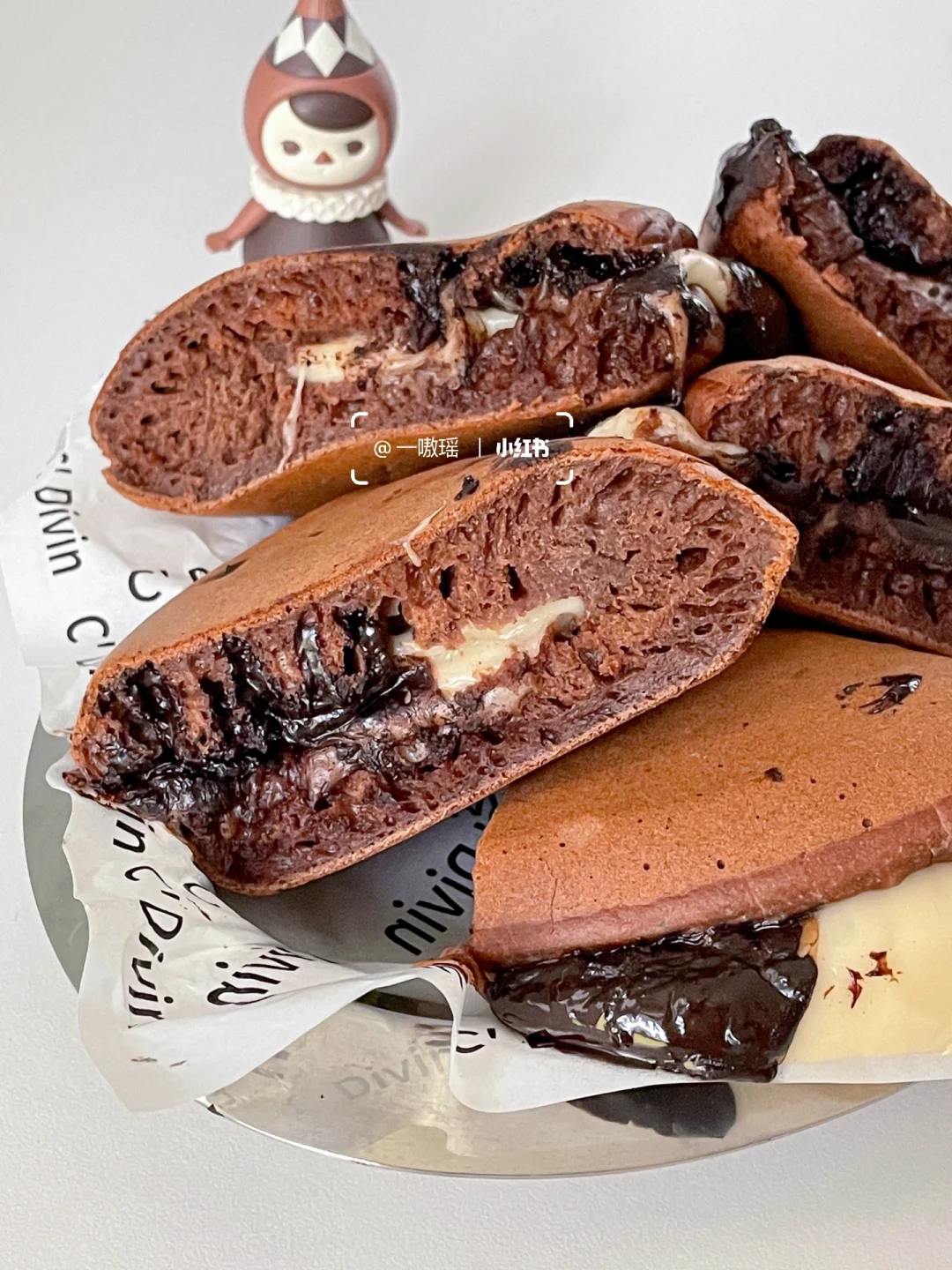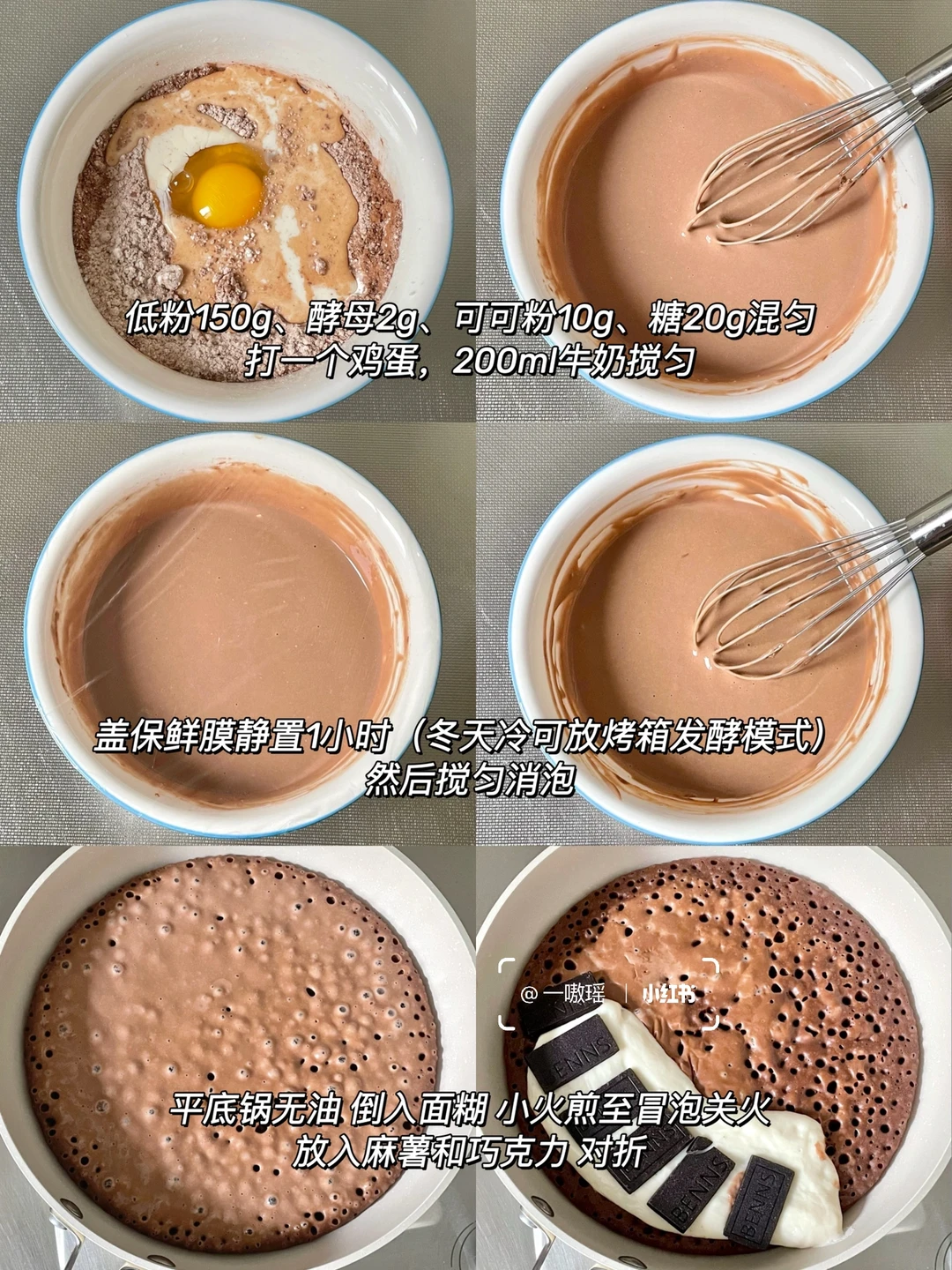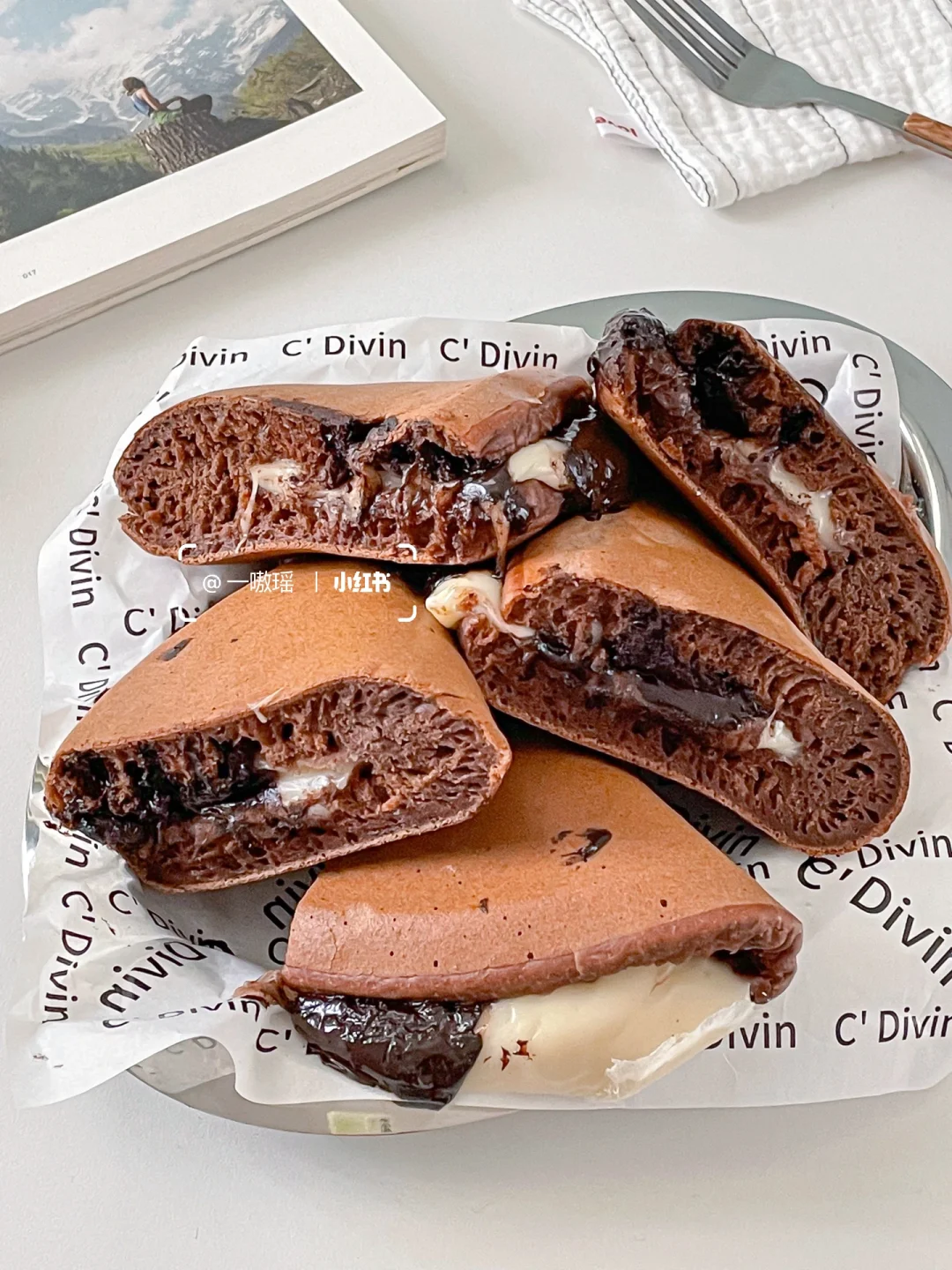 低筋面粉150g 酵母2g 可可粉10g 糖20g 鸡蛋一个 牛奶200g 黑巧6块