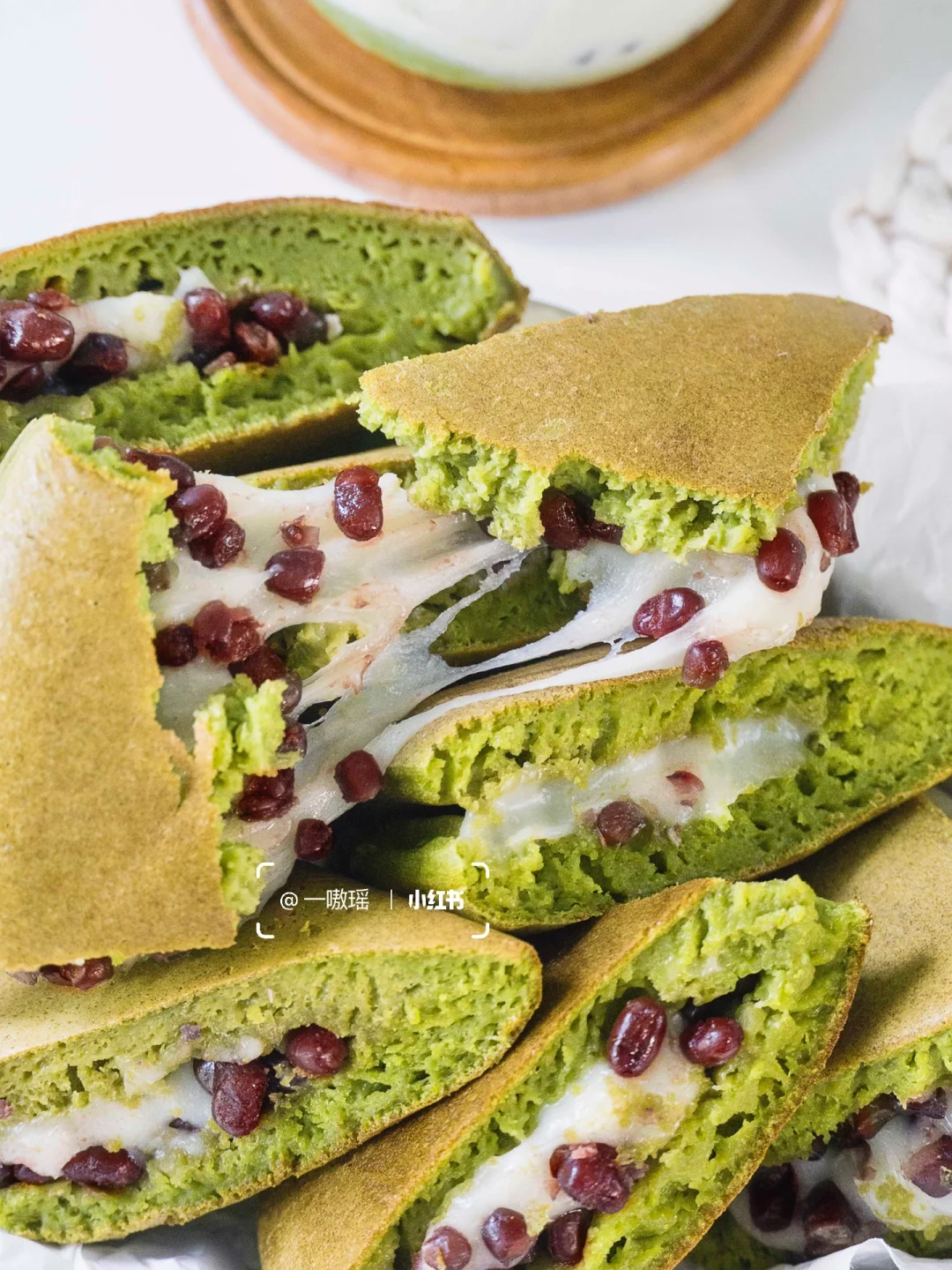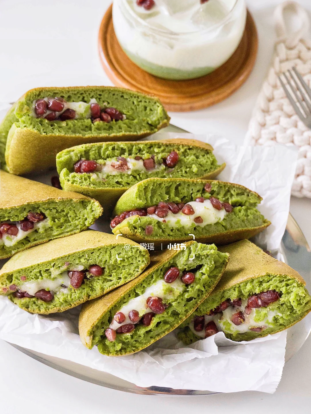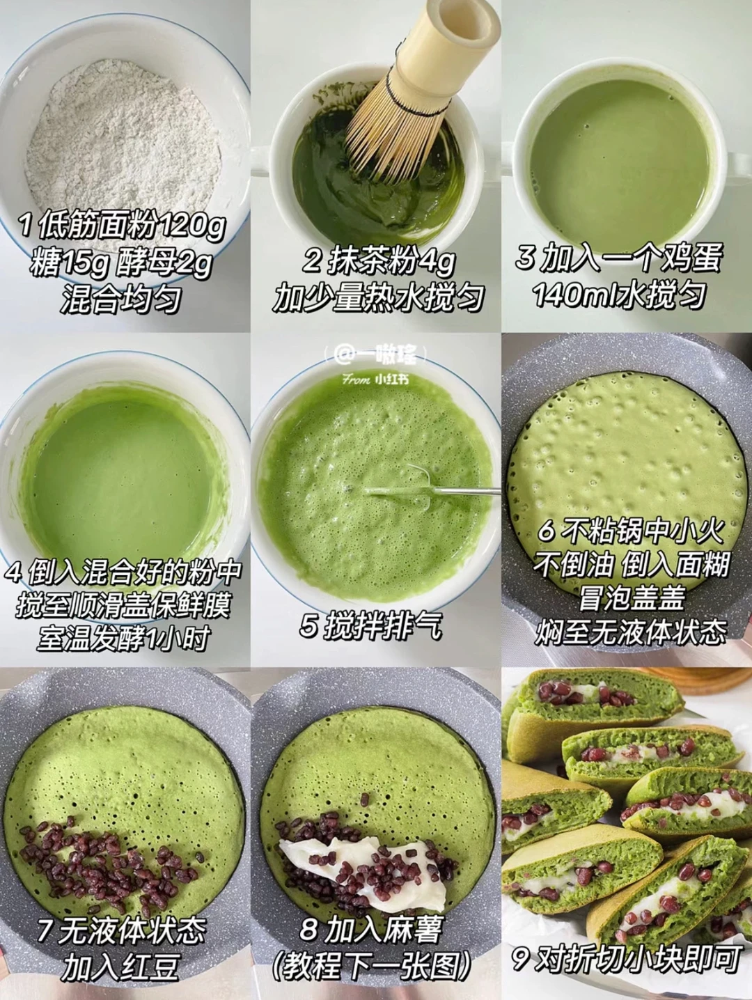 低筋面粉120g 酵母粉2g 牛奶75g 糖15g 抹茶粉4g 鸡蛋1个 蜜红豆适量