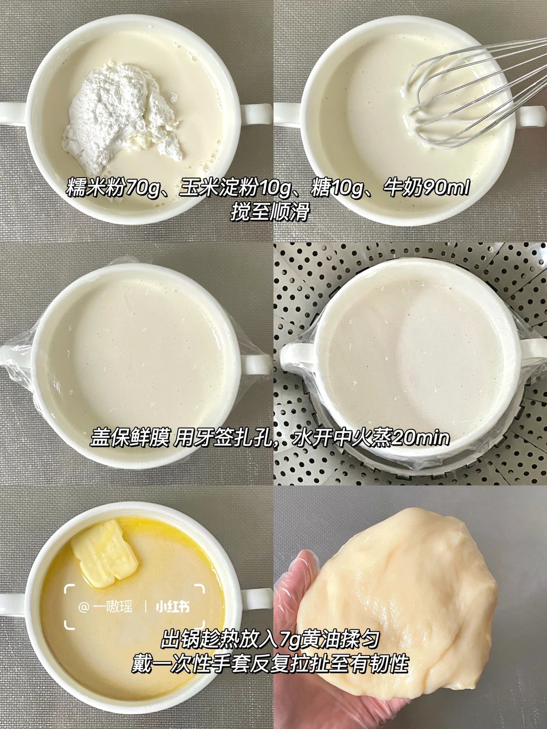 麻薯:糯米粉50g 玉米淀粉18g 玉米油7g 糖10g