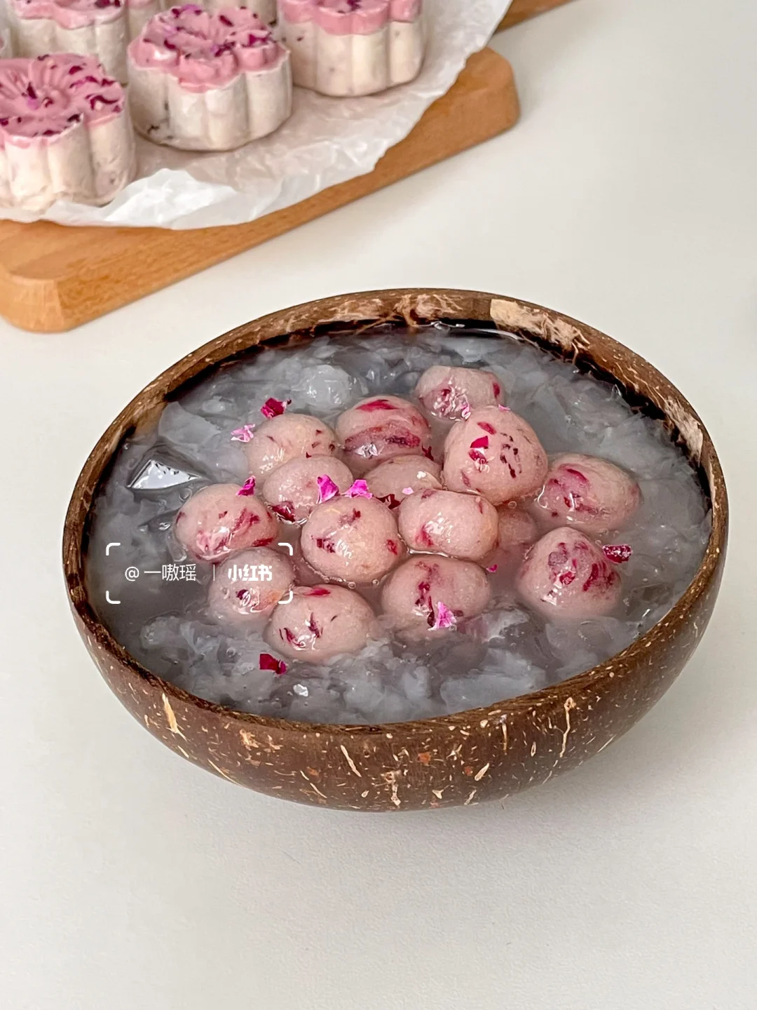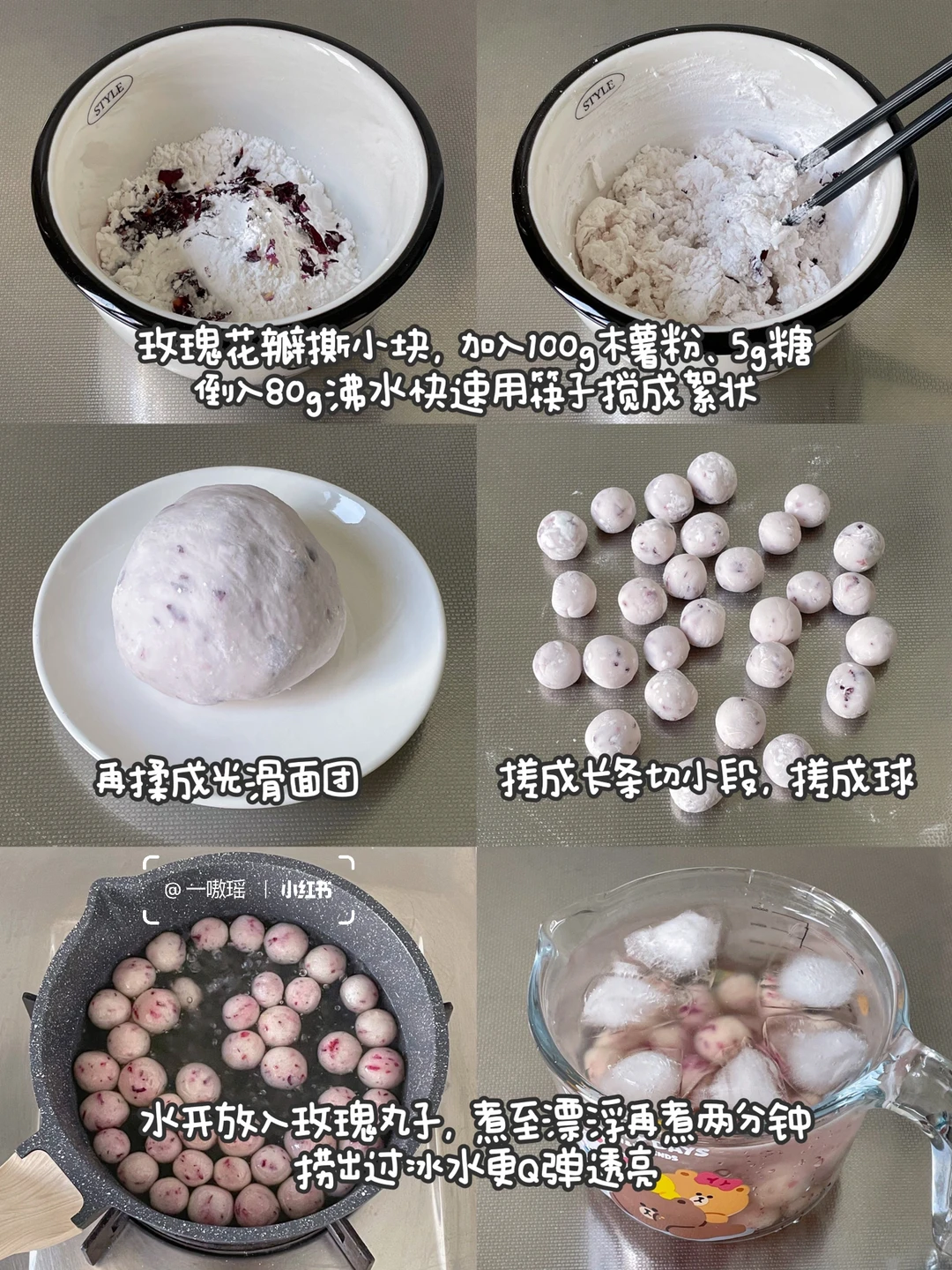 ·水开放入玫瑰丸子,煮至漂浮再煮两分钟,捞出过冰水更Q弹透亮