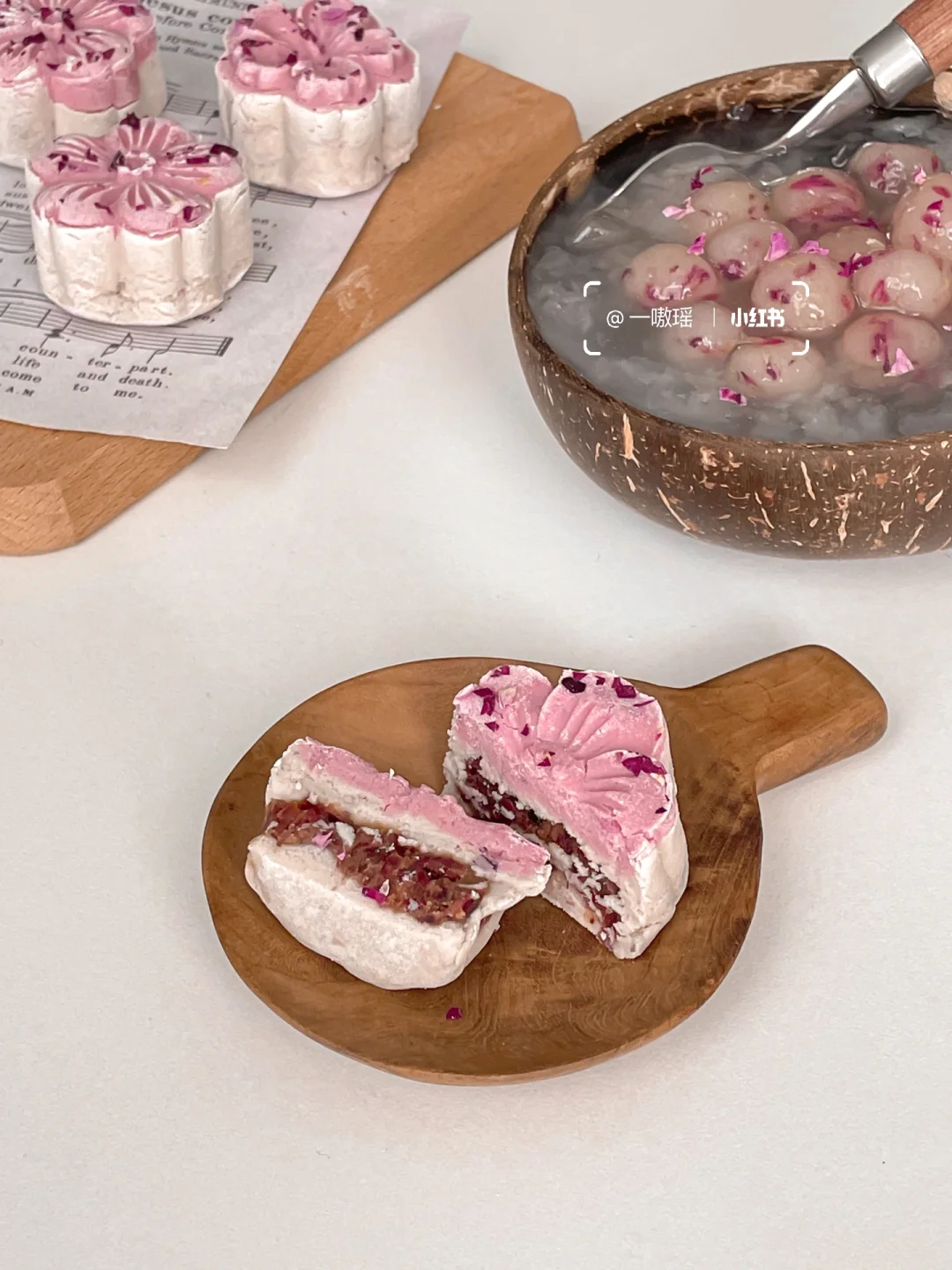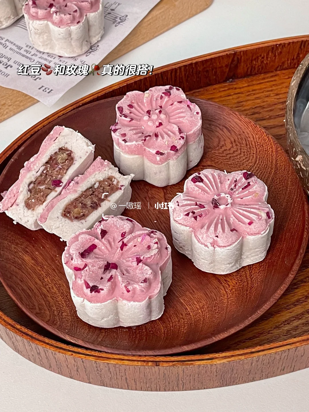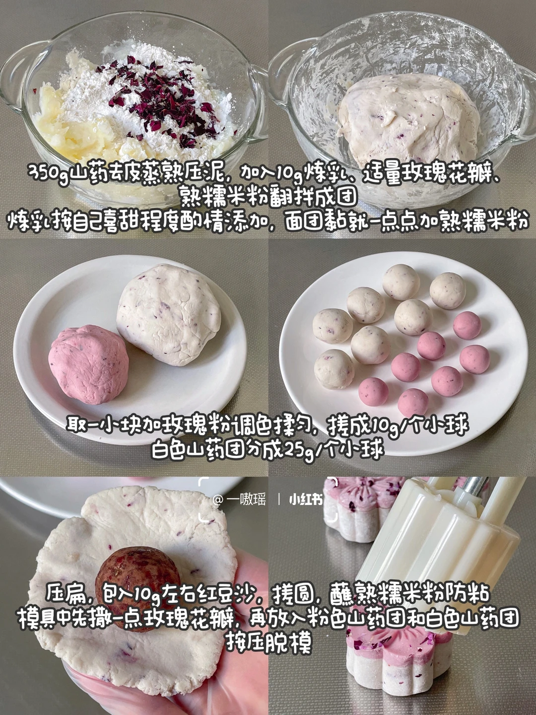 铁棍山药 熟糯米粉 炼乳 玫瑰花瓣 玫瑰粉(调色用)自制红豆馅