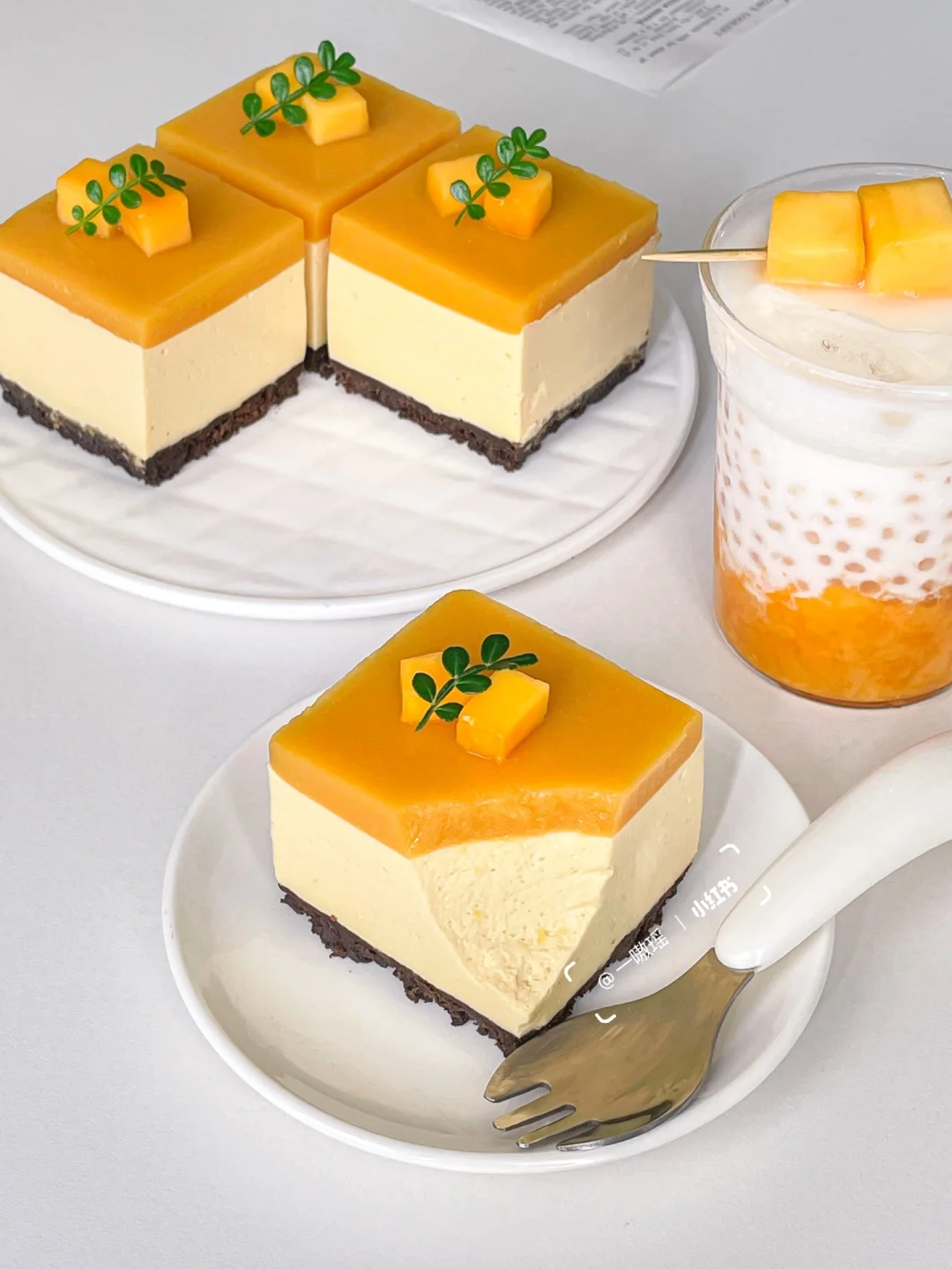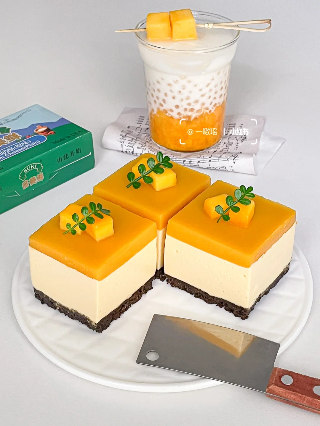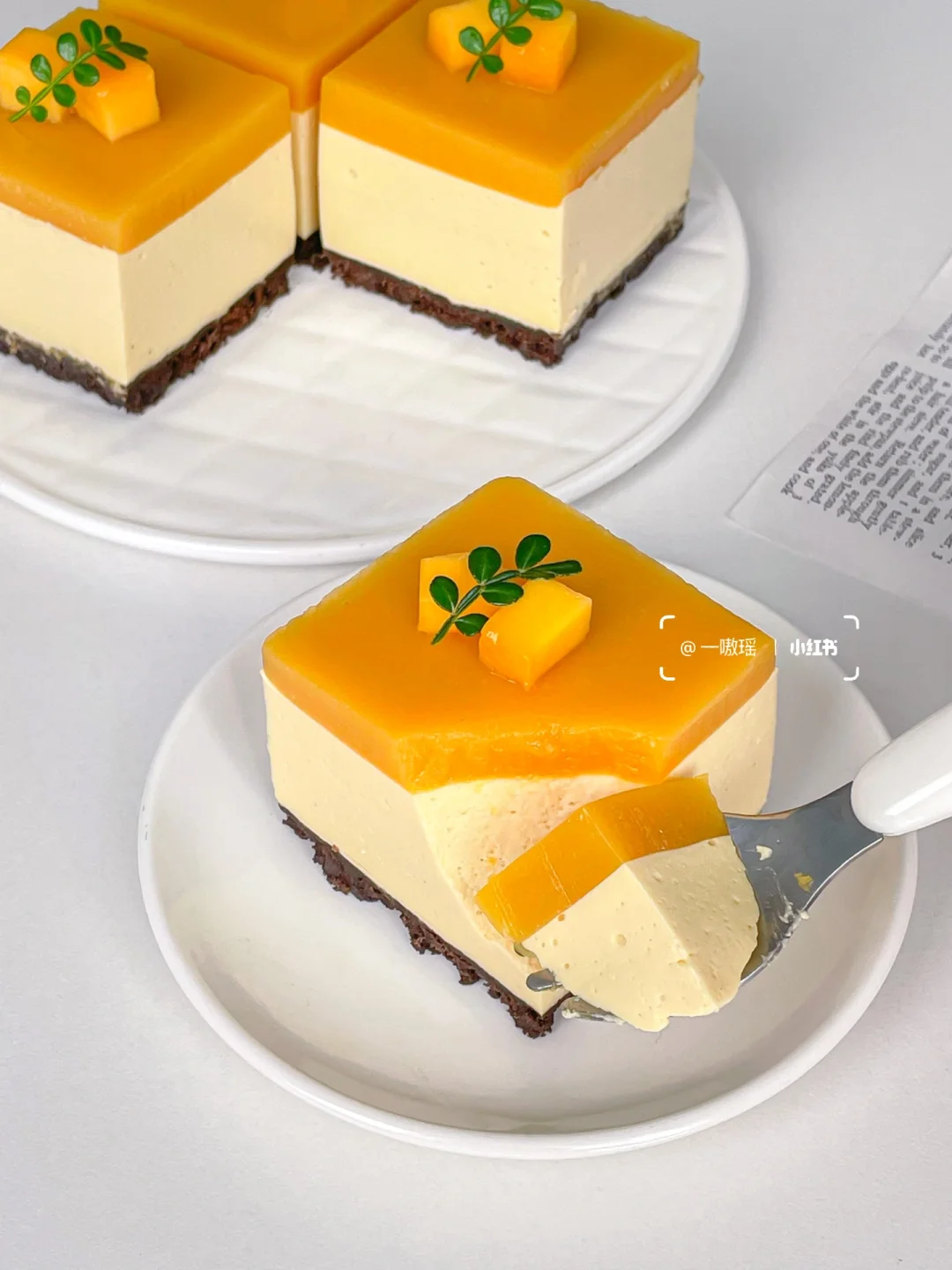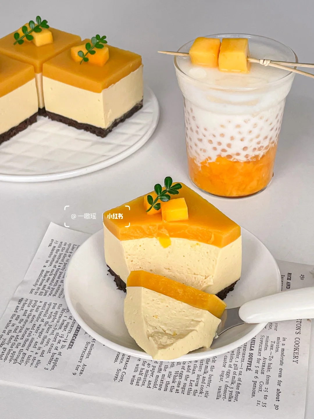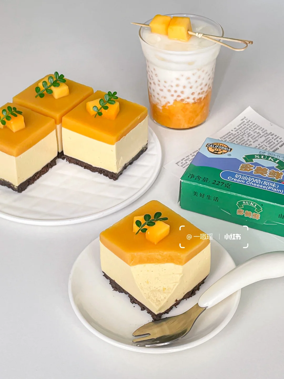 🥭超浓郁的芒果奶香味(˶‾᷄ ⁻̫ ‾᷅˵)口感醇厚又丝滑,入口即化!是初夏必做小甜品✨