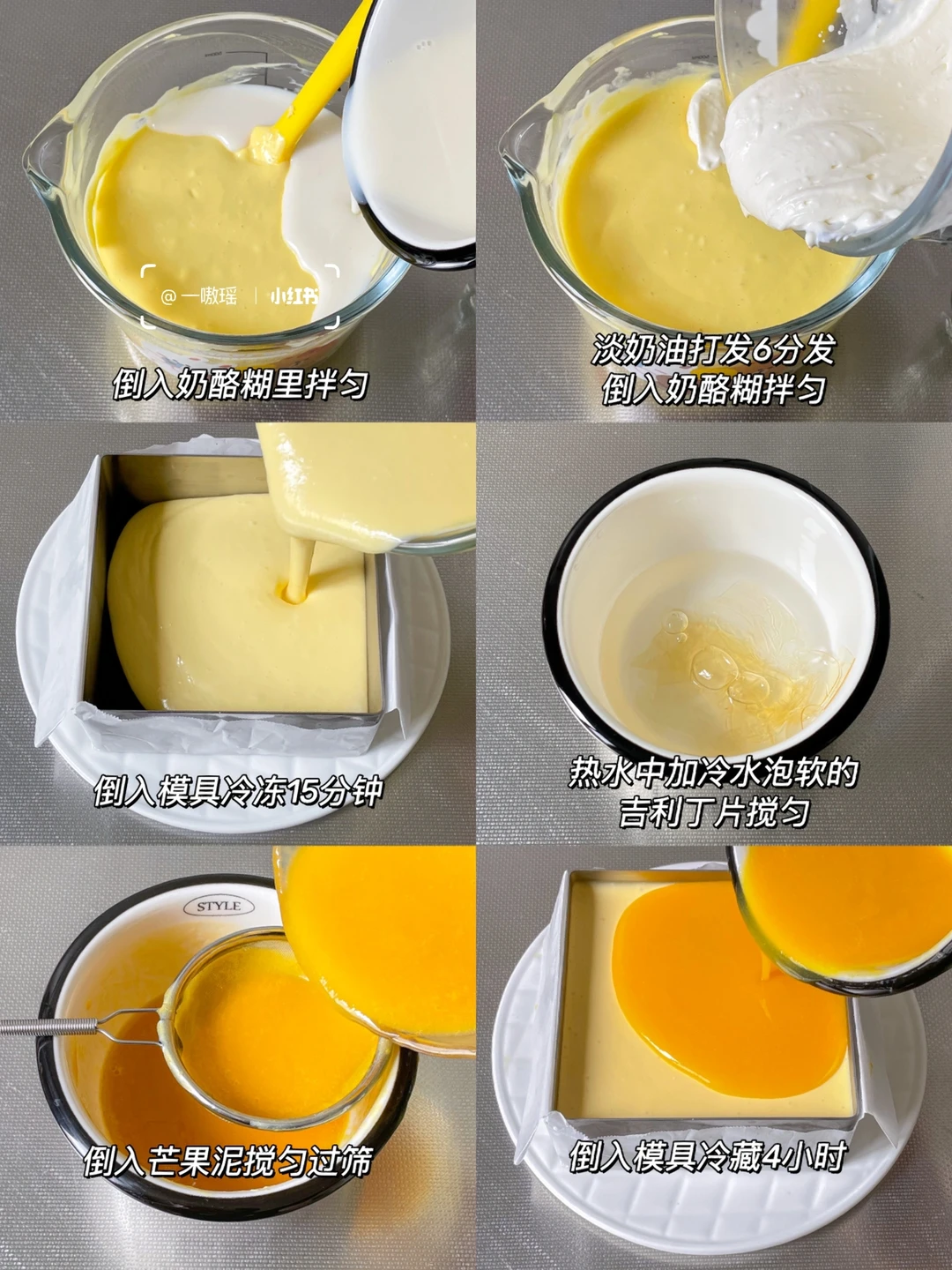 ·芒果削皮切丁打成泥倒入奶酪里拌匀