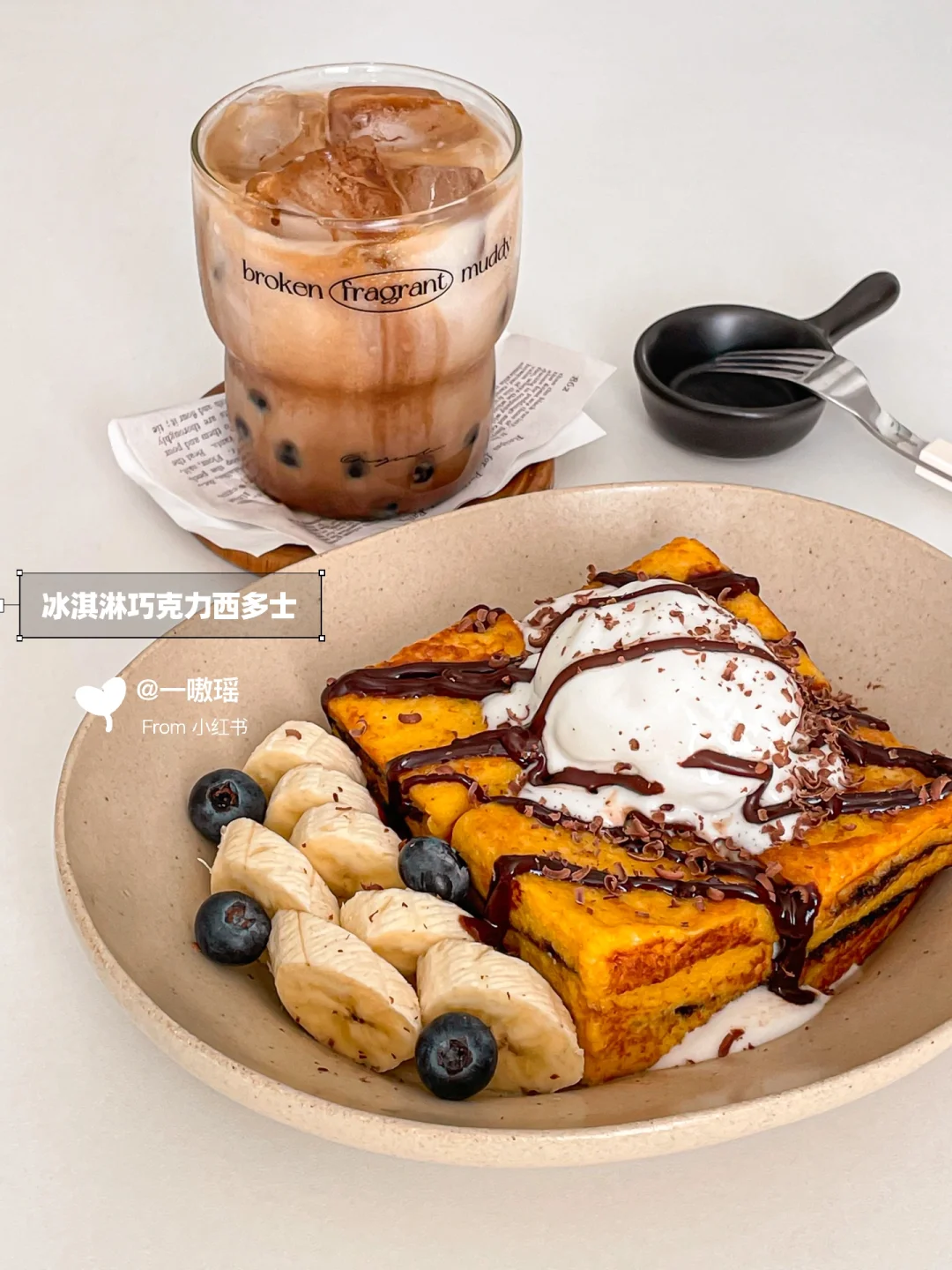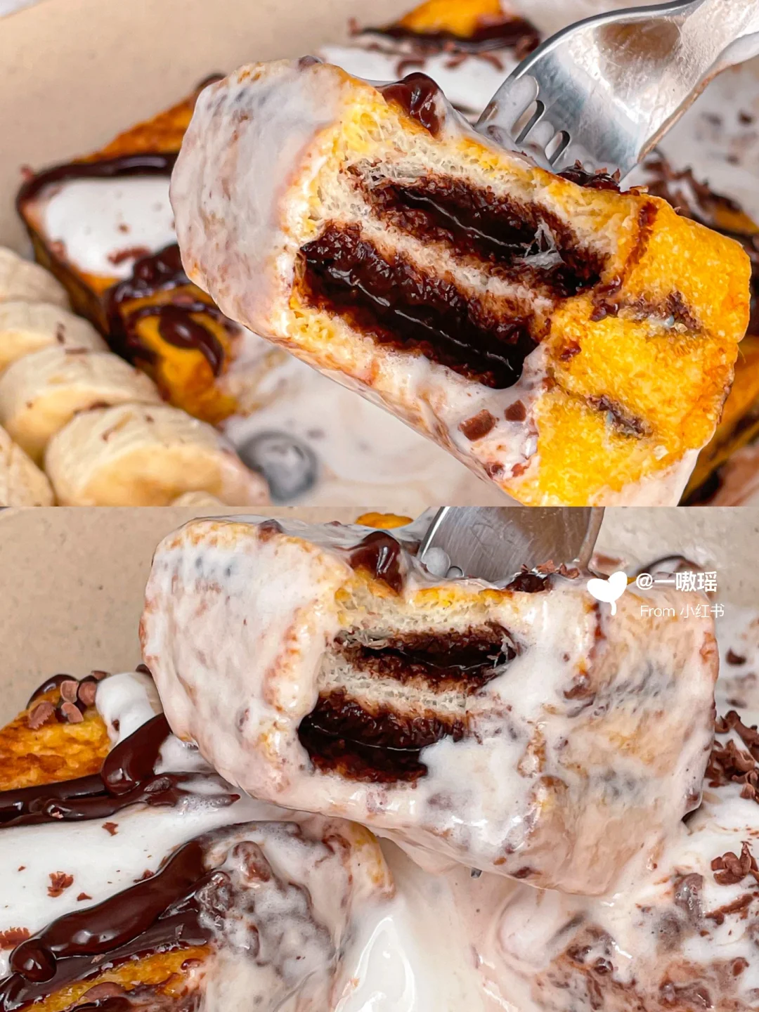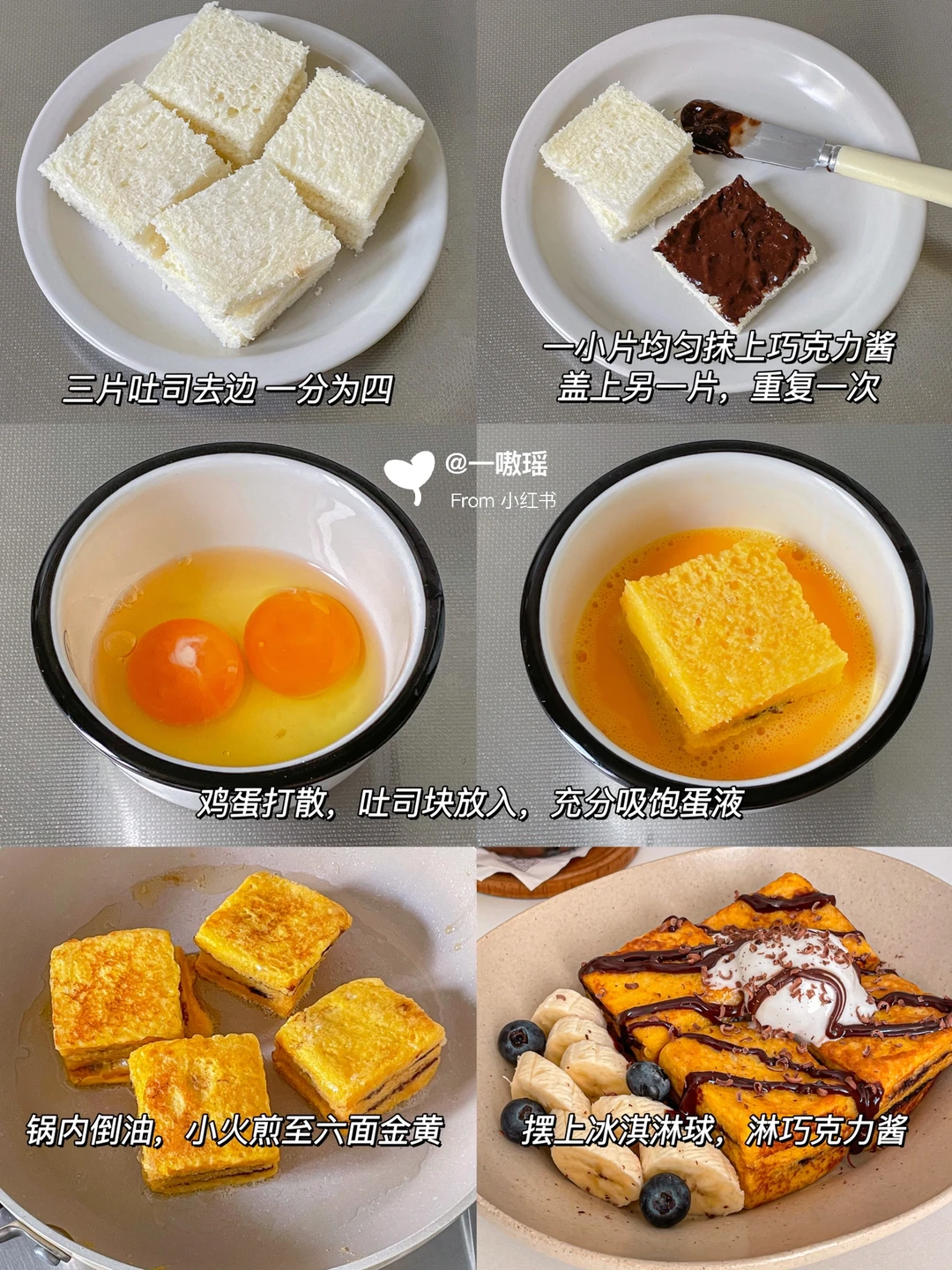 食材:三片吐司 巧克力酱 鸡蛋 冰淇淋