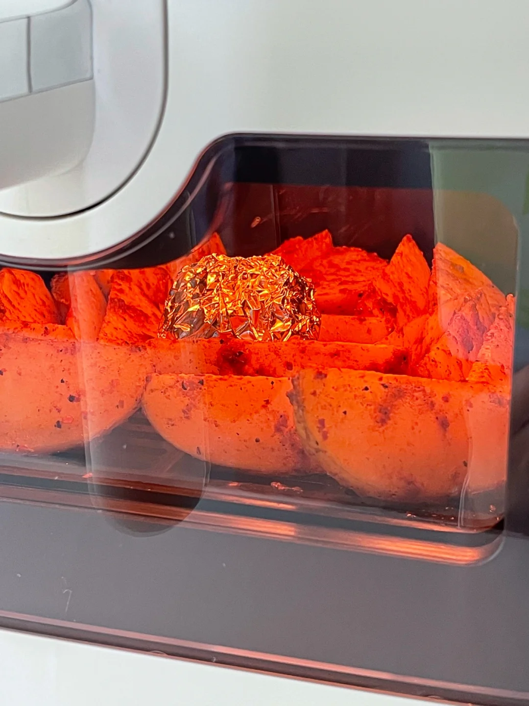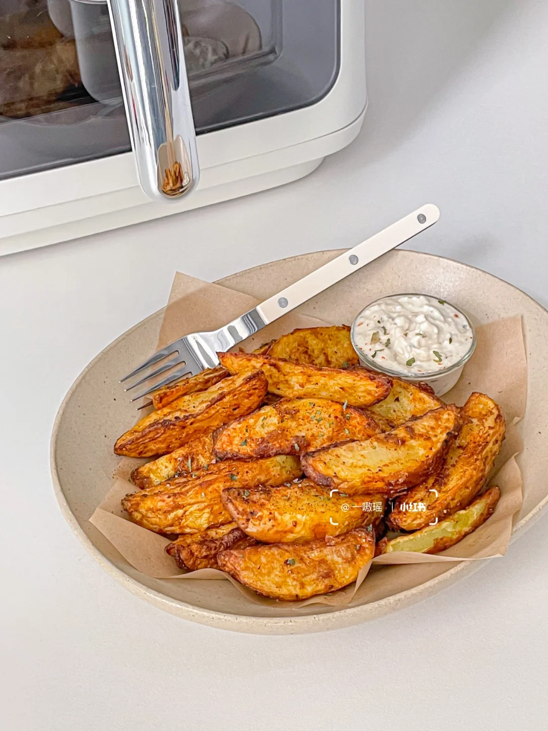🥔不需要油炸的烤薯角,口感却丝毫不输~还得是费奥斯顿空气炸锅!同样4L容量不同于其他空炸,高度会低一丢丢,所以空间相对更宽敞,更容易把食材铺开,使得烘烤均匀,省去中途翻面的步骤。