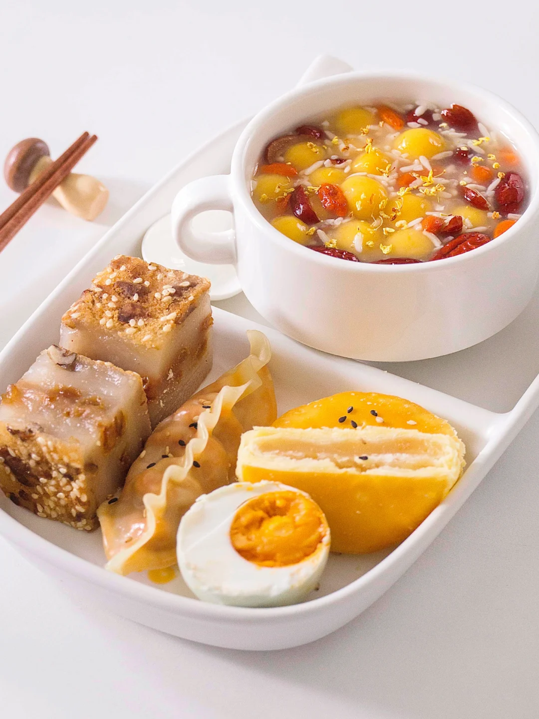 8⃣️赤豆元宵·纸皮烧卖·咸蛋黄流沙米糕·mini肉肠·鸡蛋